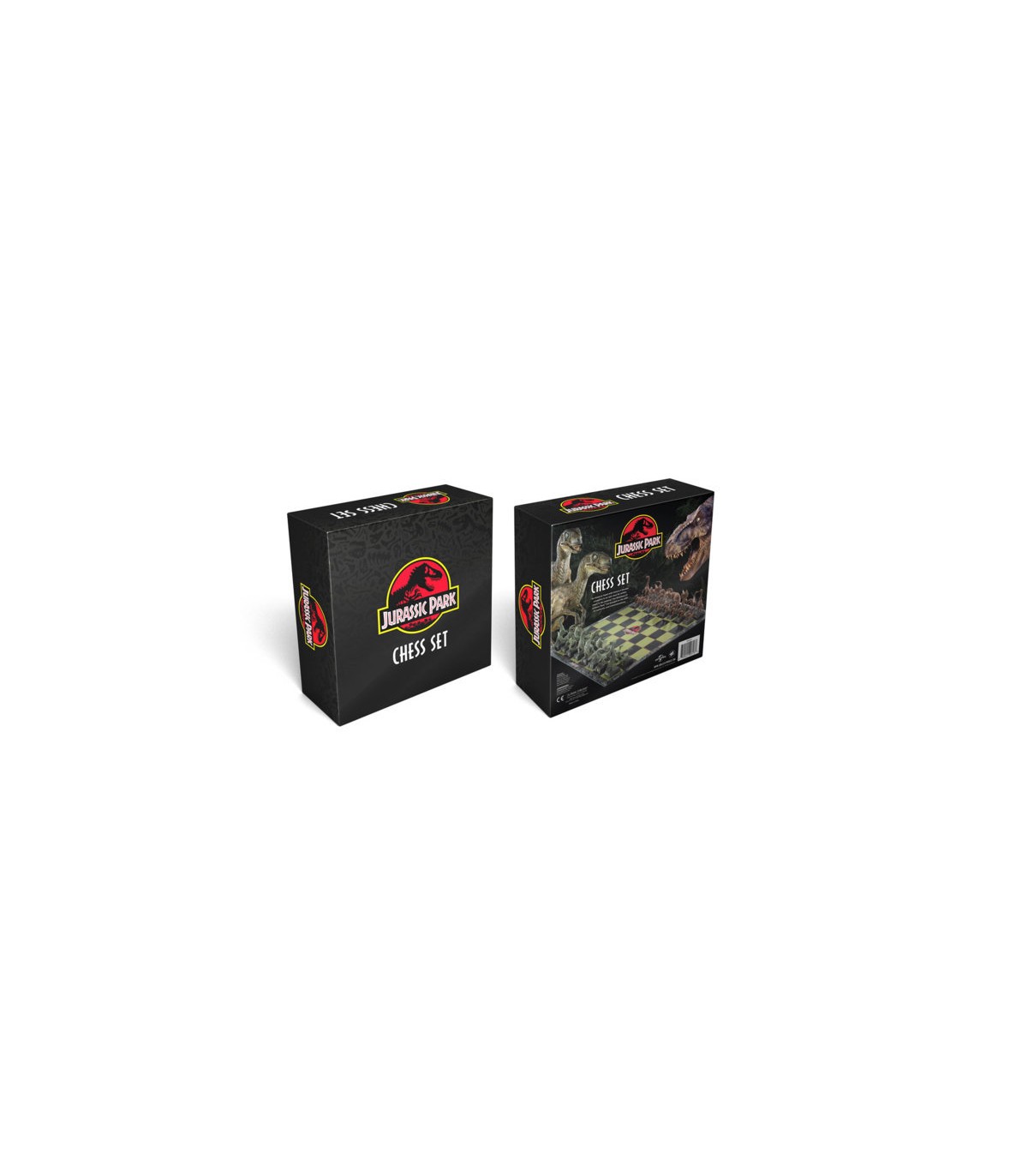 Questo set di scacchi di Jurassic Park include 32 pezzi rappresentanti dinosauri finemente scolpiti su una scacchiera a tema. Il Re è ovviamente un Tirannosauro, la Regina uno Spinosauro, i Vescovi sono Dilofosauri, i Cavalieri sono Velociraptor, le Torri sono Brachiosauri e i Pedoni rappresentati dagli Pteranodonti. Tanto divertimento da rettile giurassico per gli amanti dei dinosauri di tutte le età.