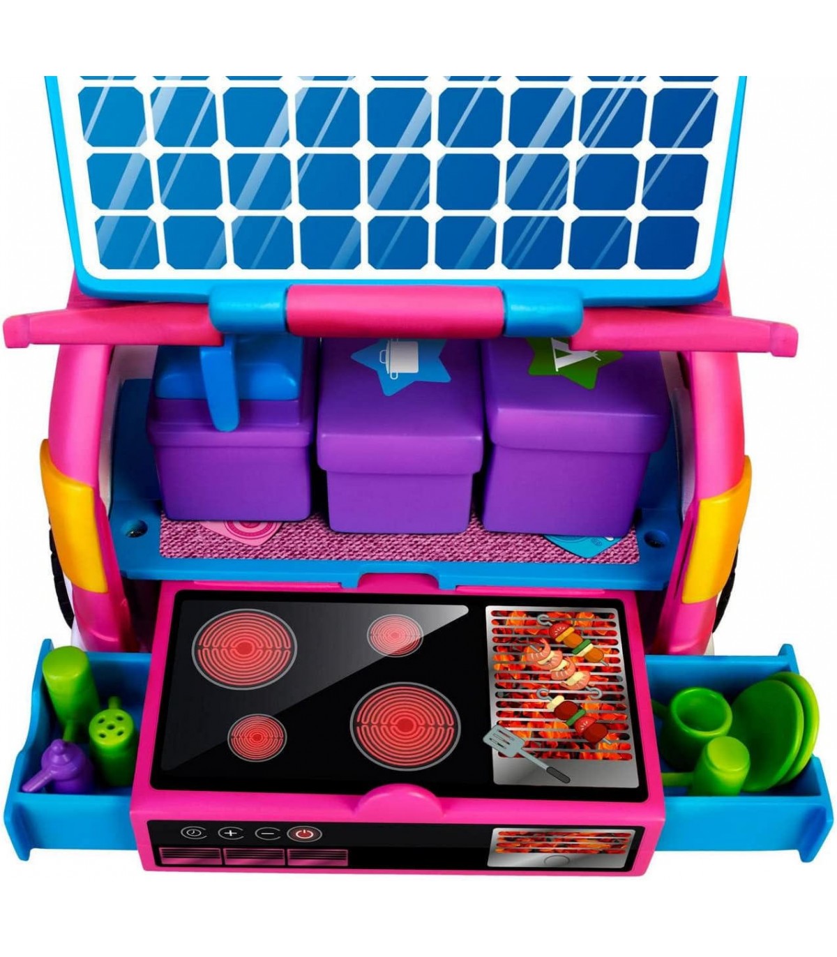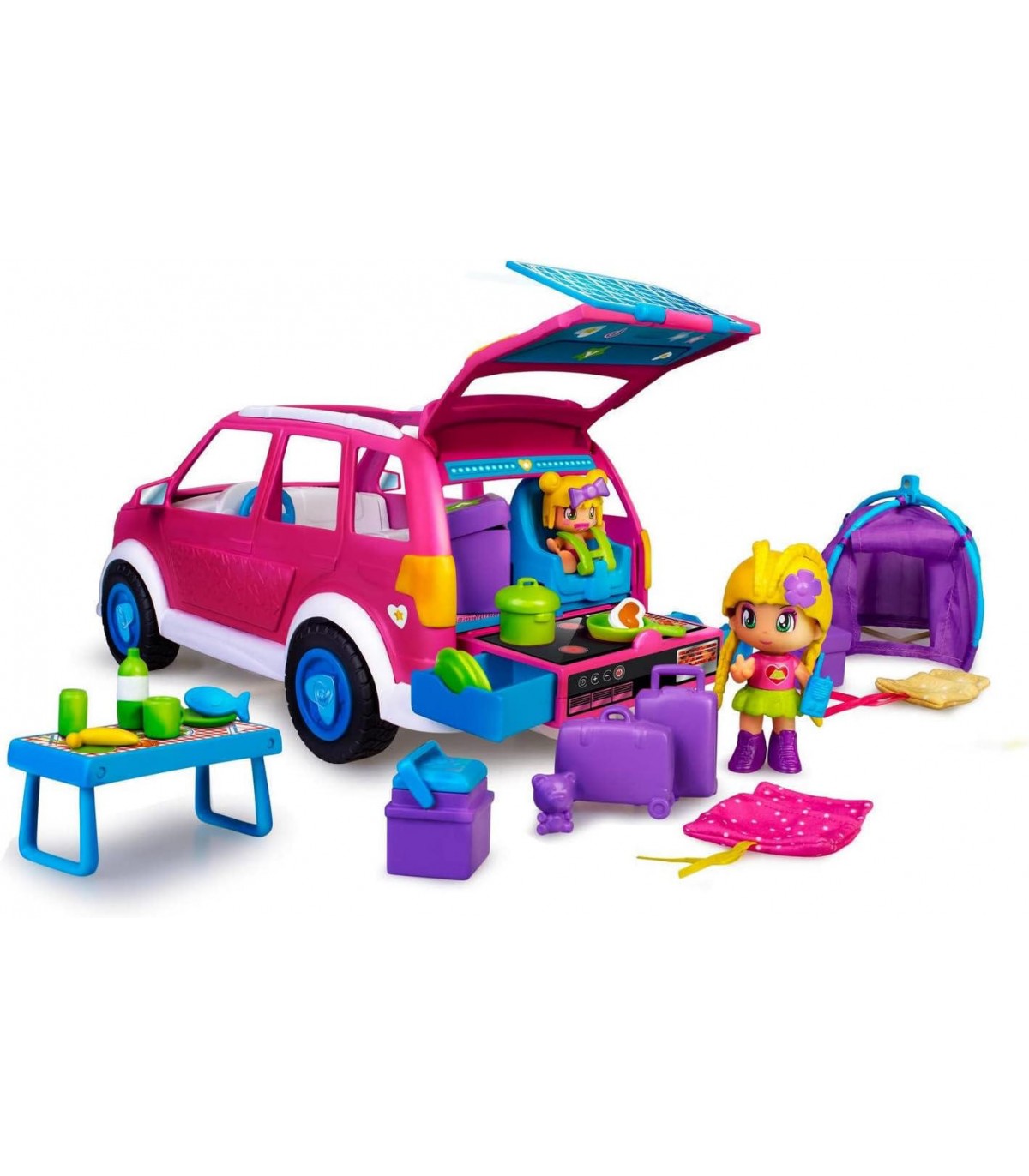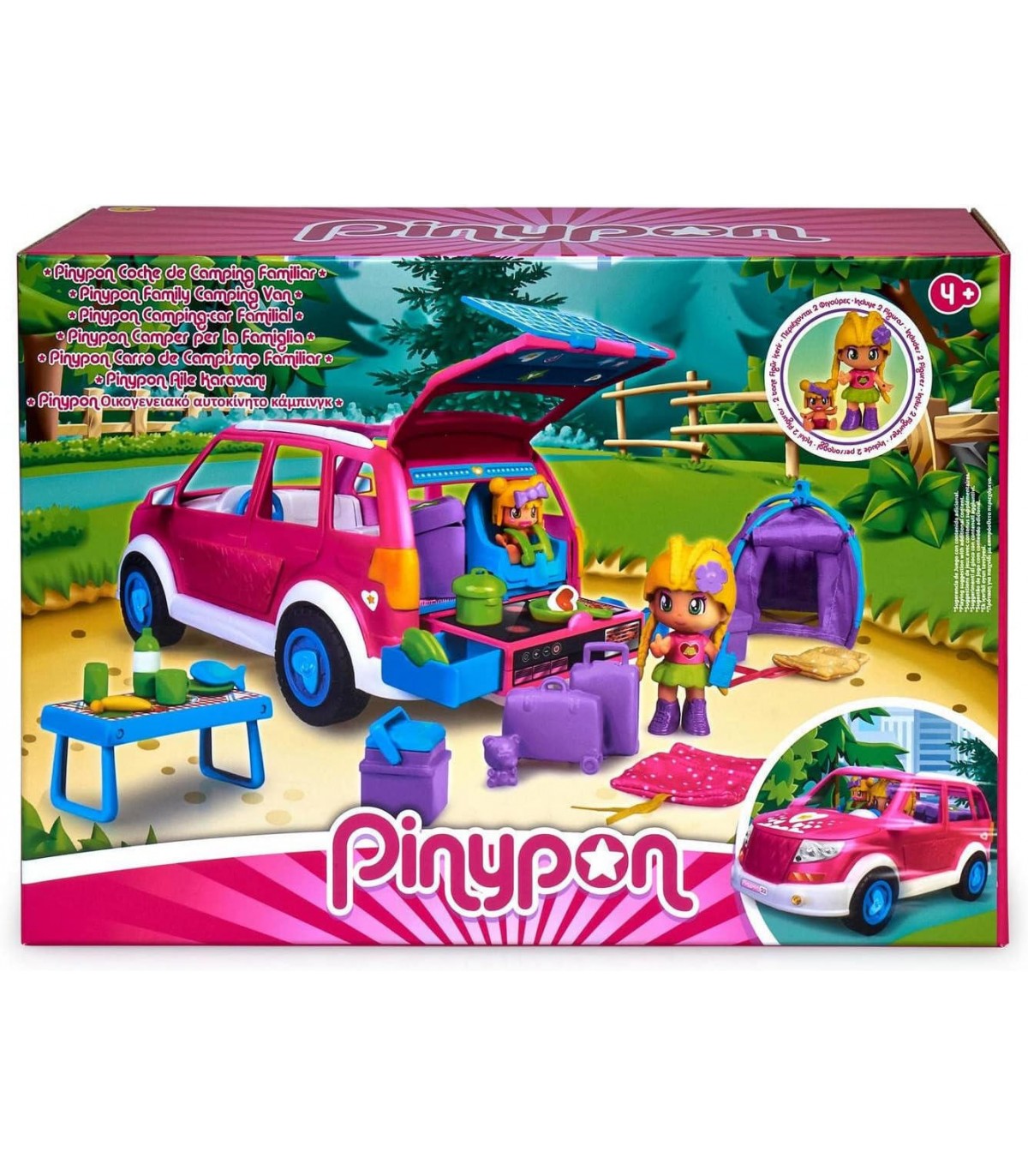 La nuova Camping auto Pinypon è ideale per le vacanze in famiglia. Include tantissimi accessori: una tenda, due sacchi a pelo, un seggiolino per il bambino, un frigo, un tavolo da picnic, valigie, 3 grandi scatole, binocolo, walky talky, lanterna, cibo, piatti, bicchieri. Il baule si trasforma in una piccola cucina, il pannello solare in un grande schermo TV. Con due personaggi Pinypon: mamma e bambino.