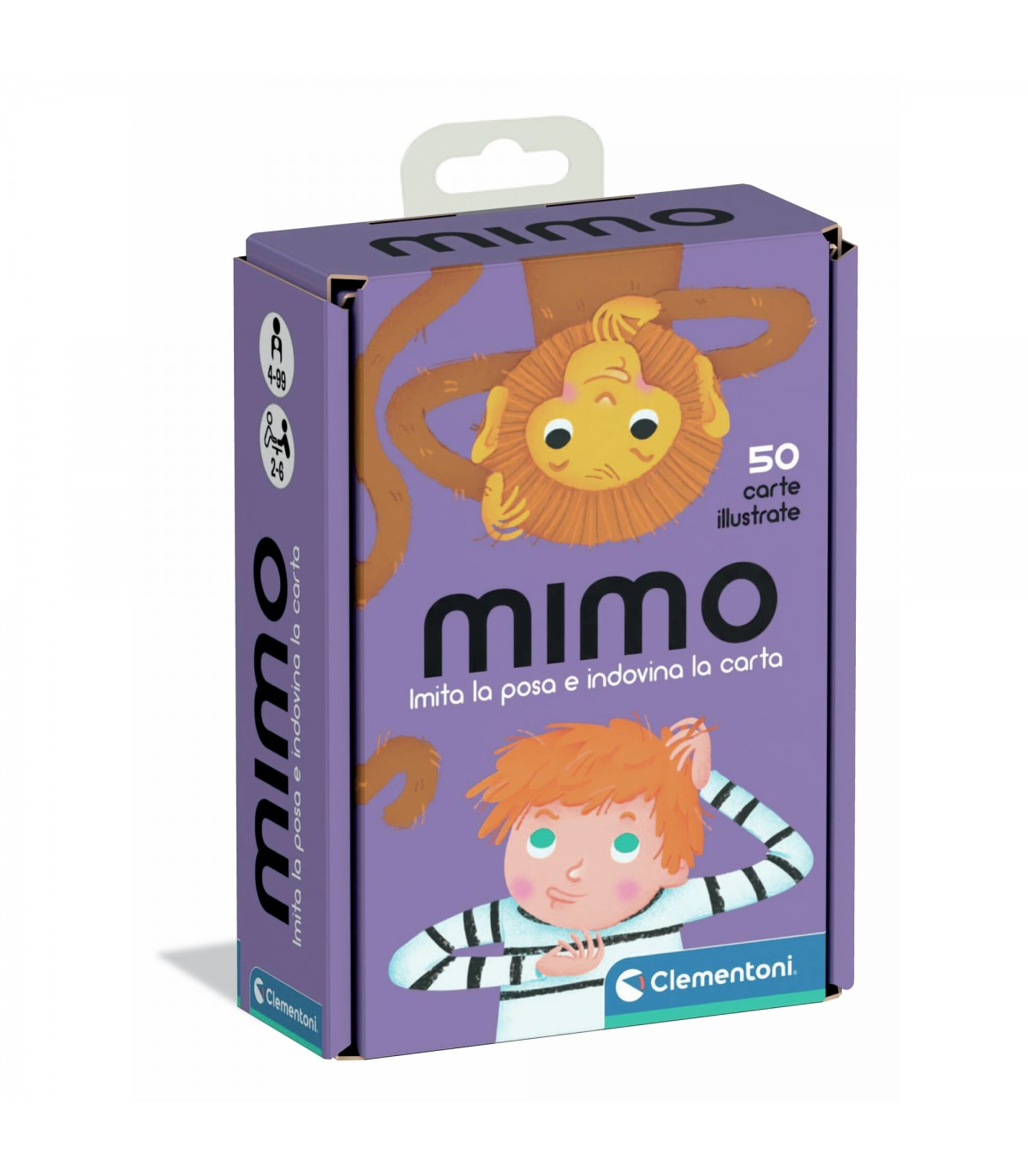 Il tradizionale gioco del mimo fatto su misura per i bambini in età prescolare. Il gioco contiene 50 carte con simpatici personaggi raffigurati in buffe smorfie e pose. Scopo del gioco è imitare l'azione o l'animale illustrato nella carta cercando di farla indovinare agli altri. Il vincitore sarà chi riuscirà a indovinare il maggior numero di imitazioni. Made in Italy.