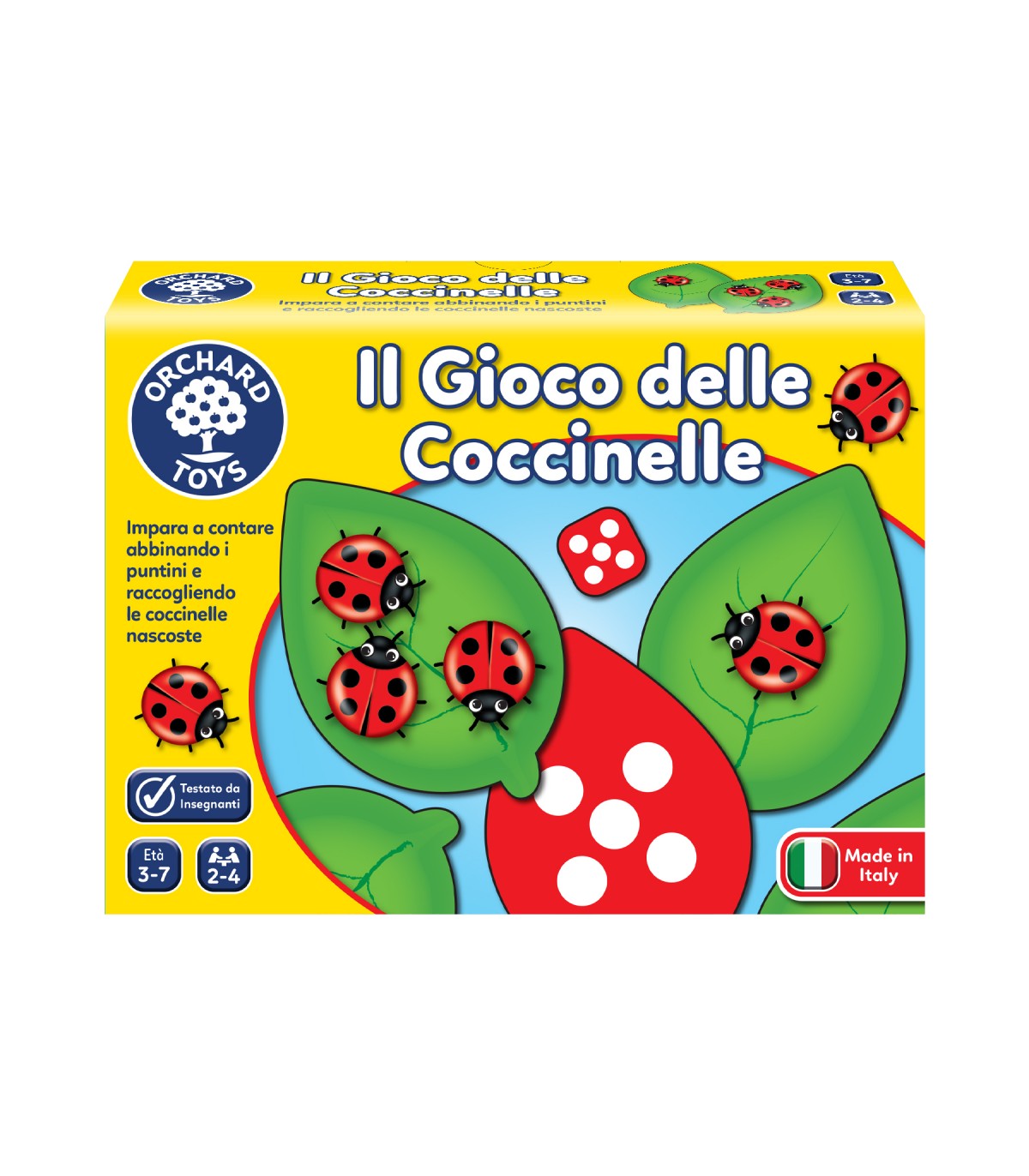I bambini impareranno a contare abbinando i puntini e collezionando simpatiche coccinelle in uno dei primi giochi in assoluto di Orchard Toys! I giocatori devono lanciare il dado, abbinare i puntini sulle tessere a quelli sul dado e contare le coccinelle nascoste sotto le foglie. Il giocatore con il maggior numero di coccinelle alla fine del gioco è il vincitore. Il gioco delle coccinelle è un gioco di anticipazione, in cui i giocatori aspettano con entusiasmo di vedere quante coccinelle gireranno - potrebbero essere tre...o zero?! Oltre ad abbinare il numero sul dado al numero sulle carte, i giocatori acquisiranno abilità matematiche aggiuntive dal contare tutte le loro coccinelle alla fine. Contenuto: 24 tessere coccinella 1 dado 1 foglio di istruzioni