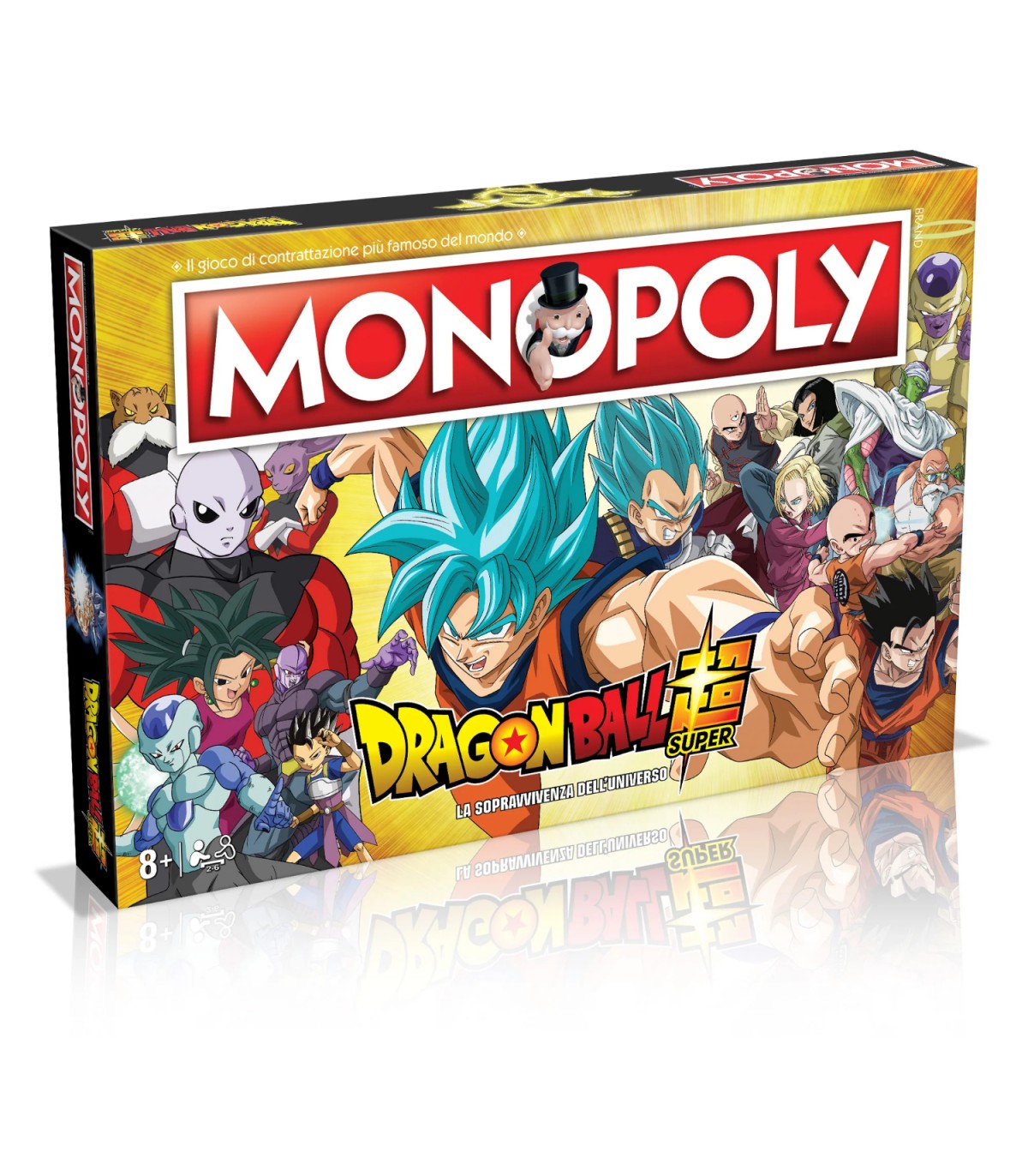 In questa edizione speciale del Monopoly ispirata a Dragon Ball Super, avrai la possibilità di provare a conquistare i personaggi dell'anime, inclusi Goku, Piccolo, Gohan, Vegeta, Jiren, il Gran Sacerdote, Zeno, gli Dei dell'Universo e molti altri. Utilizza le carte deli Dei e dei Guerrieri a tuo vantaggio e acquista, vendi e scambia lungo la via verso il successo. Sarai tu il guerriero più forte? Il celebre monopoly a colori di Dragon Ball Super Contenuto: Tabellone, 8 pedine degli universi, 28 carte dei contratti, 16 carte degli Dei, 16 carte dei Guerrieri, 1 confezione di denaro del Monopoly, 32 case, 12 alberghi, 2 dadi e le istruzioni