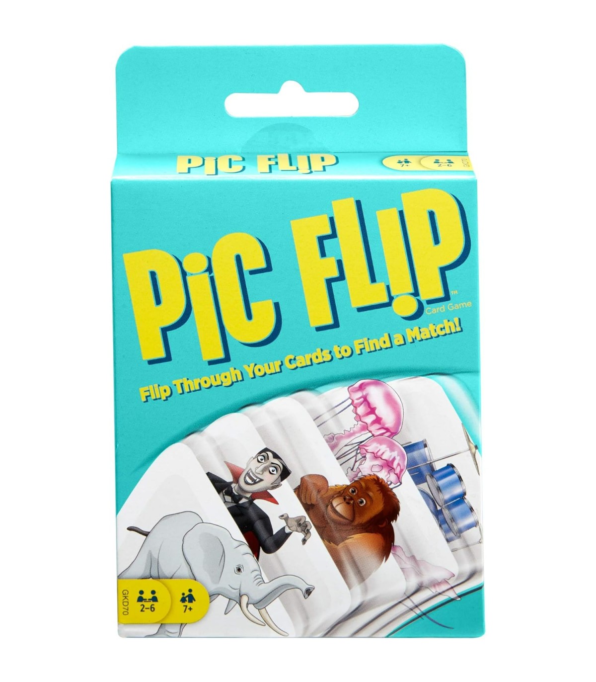Pic Flip è un gioco di carte con immagini da girare e abbinare in una corsa contro il tempo. I giocatori devono girare le loro carte per abbinare le immagini, formare le coppie e scartare tutte quelle che hanno in mano. Una volta formata una coppia, ne viene dichiarata subito un'altra e la ricerca ricomincia da capo: dovete pensare in fretta però, perché il primo giocatore a restare senza carte in mano vince. Da 2 a 6 giocatori, da 7 anni in su.