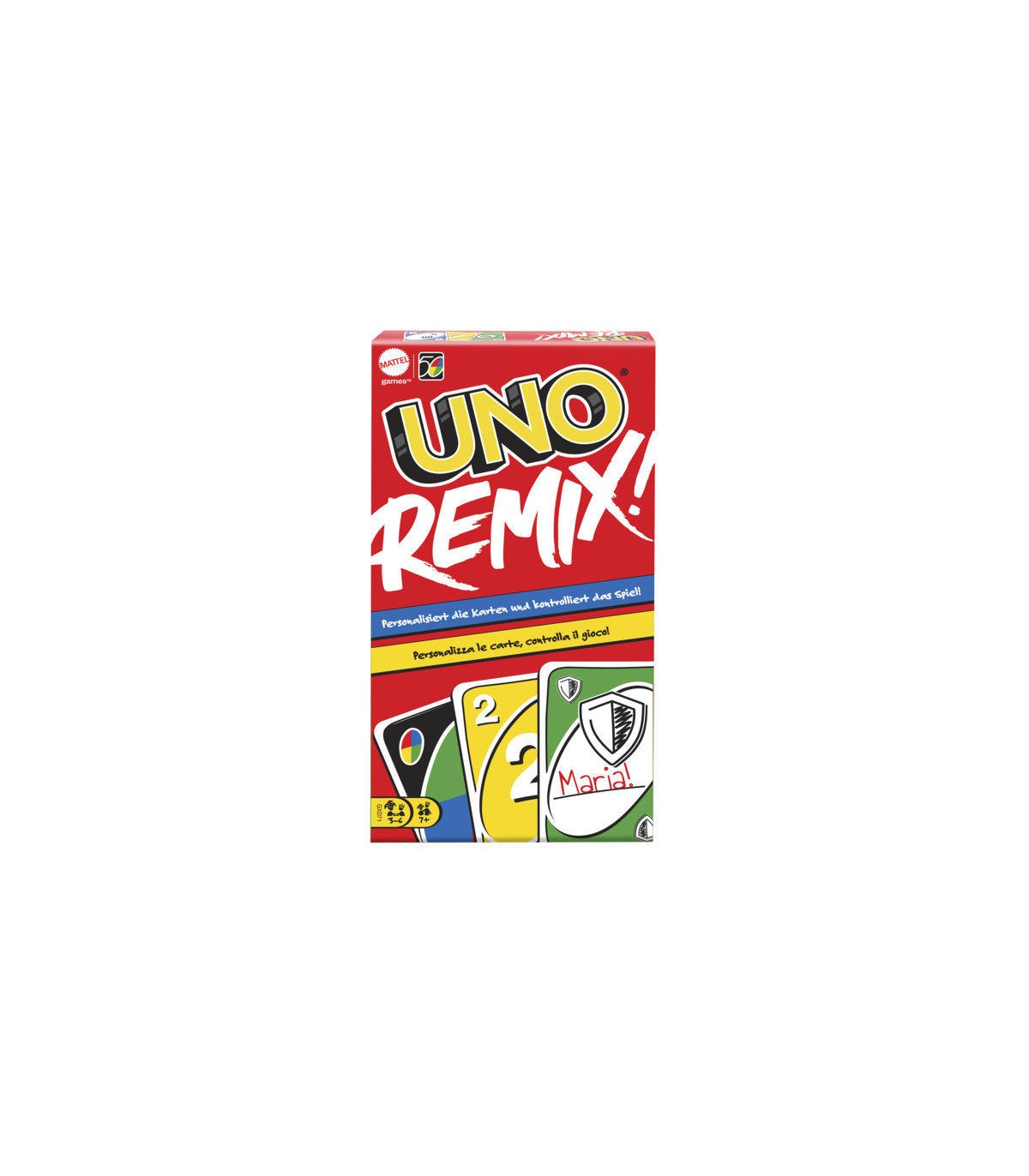 UNO Remix invita i giocatori a personalizzare un mazzo di carte UNO che si evolve a ogni turno. All'inizio di ogni turno, i giocatori aggiungono carte speciali o carte da scrivere, che cambiano il gioco di volta in volta. Possono personalizzare le carte per giocatori specifici (come Salta fino a Paolo o Maria pesca 2), alcune carte aggiungono un simbolo per aumentare la quantità di carte che il giocatore successivo deve pescare, alcune carte bloccano le carte penalità e così via! Ogni gruppo può creare un mazzo personalizzato! E, come sempre, quando un giocatore resta con una sola carta in mano dovrà gridare UNO! Colori e decorazioni possono variare.