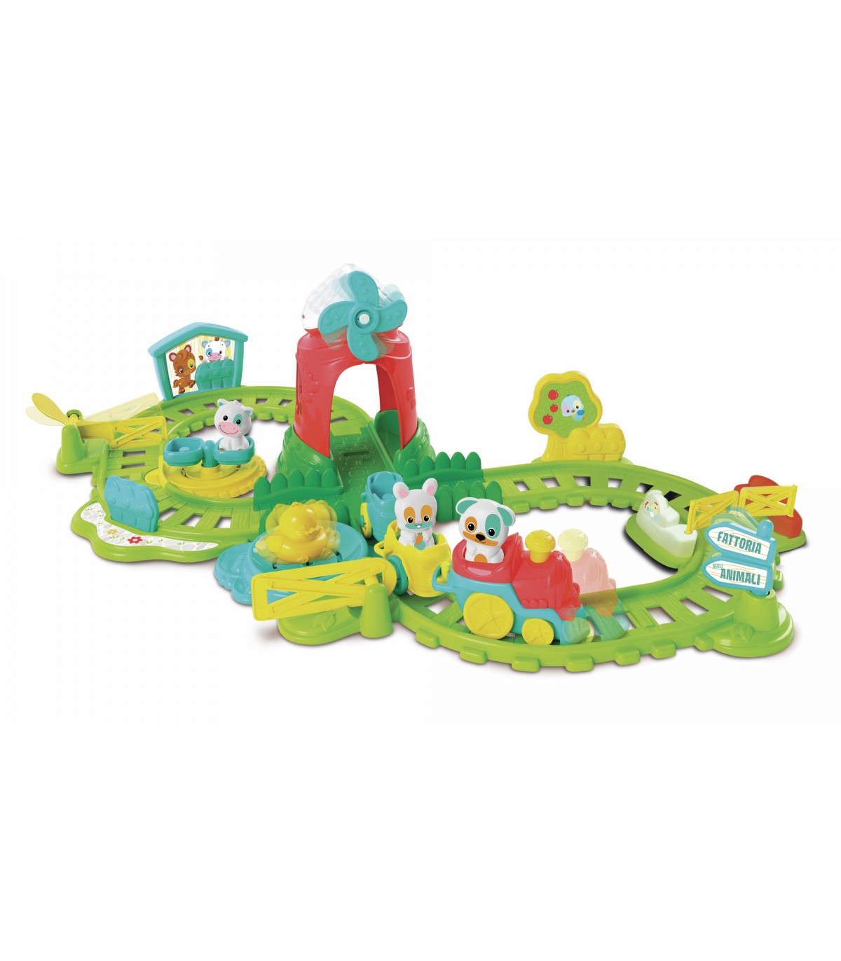 Ciuff ciuff fa il trenino e gira in una divertente pista che è anche un play set ambientato nel mondo della fattoria. Il trenino si attiva al tocco della ciminiera partendo per un viaggio nel mondo della fantasia con i suoi amici: cagnolino, mucca, coniglietto e anatroccolo. Al passaggio del trenino il mondo della fattoria si anima: le sbarre si sollevano, il mulino gira e il gallo e l'anatroccolo fanno i loro versi. Per un divertimento da vero play set, chiudendo il cancello giallo l'anatroccolo nuota nello stagno gira e la giostra gira. Stimola la manualità, la coordinazione occhio-mano e il gioco di immaginazione.