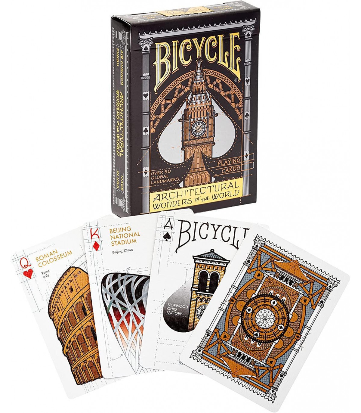 Scegli il mazzo Bicycle - Architectural e trasforma il tuo modo di giocare, scoprendo le meraviglie del mondo attraverso l'arte delle carte. Un viaggio che non vorrai più interrompere!