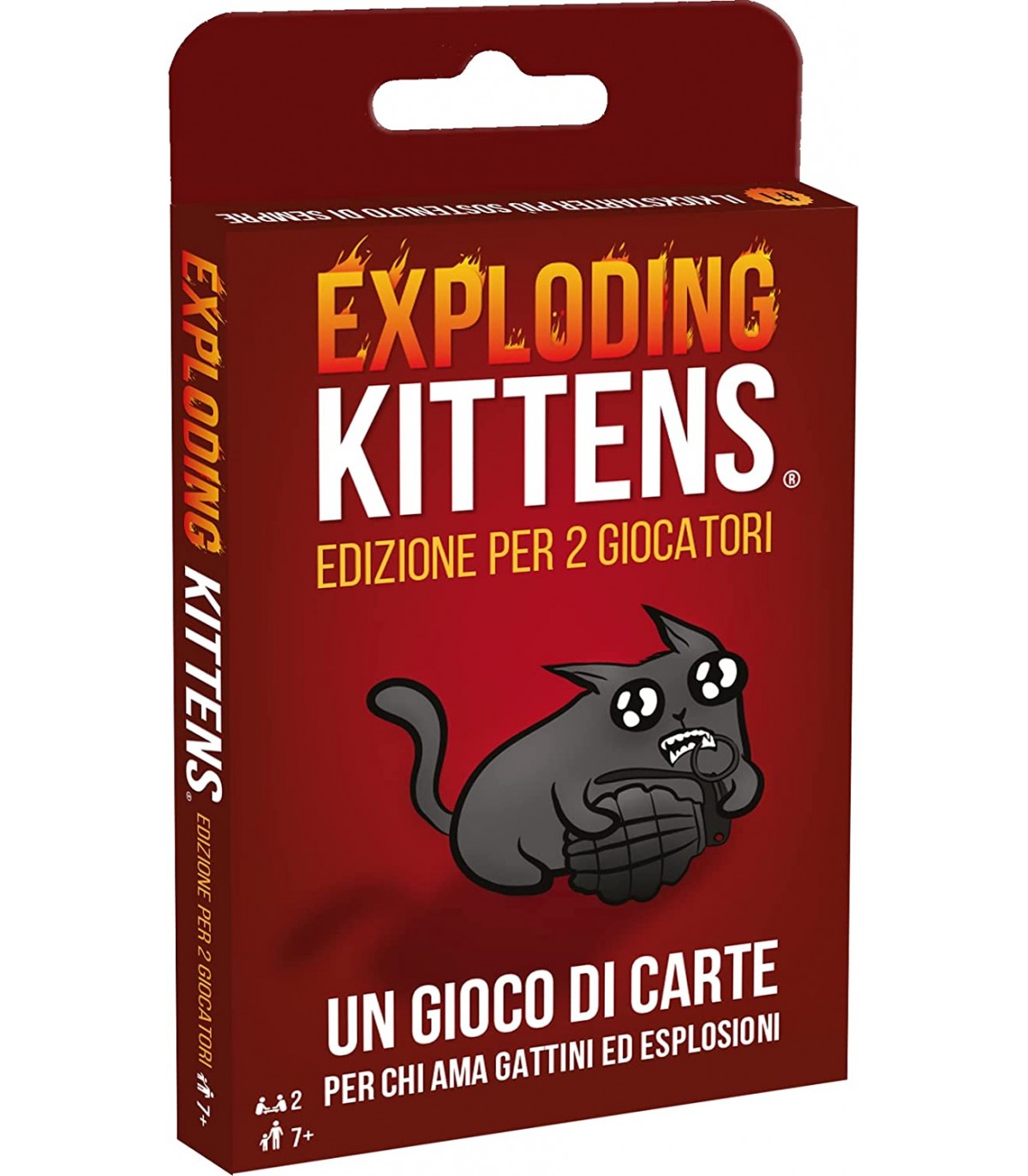 La versione di Exploding Kittens pensata appositamente per due giocatori!I giocatori pescano carte fino a quando qualcuno non incappa nella temuta carta Exploding Kitten: a quel punto quel qualcuno esplode ed è eliminato dal gioco, a meno che non abbia una carta Disinnesgatto per evitare l'esplosione.