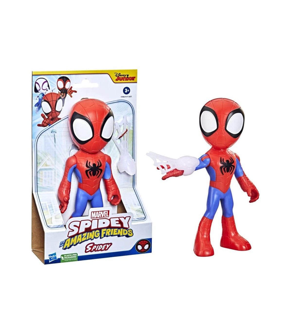 È il momento di Spidey! L'action figure Supersized Hero Spidey di Spidey e I Suoi Fantastici Amici è realizzata per coloro che sono dotati di una grande immaginazione. Questa enorme action figure del supereroe alta 22,5 cm e con punti di snodo è grande, amichevole e pronta per giocare! I bambini e le bambine in età prescolare possono collegare l'accessorio ragnatela incluso al polso dell'action figure e muovere testa e braccia di Spidey per fargli assumere divertenti pose dinamiche e per ricreare le loro scene preferite della serie animata Marvel su Disney Junior. Cerca le action figure Supersized Miles Morales: Spider Man e Supersized Ghost-Spider (ciascuna venduta separatamente, secondo disponibilità) per tanto divertimento a tema Spidey! Questi giocattoli di Spidey sono un regalo ideale per bambini e bambine dai 3 anni in su che amano le avventure eroiche del Team Spidey. Copyright MARVEL. Tutti i marchi commerciali e i marchi commerciali registrati appartengono ai rispettivi titolari. Hasbro e tutti i termini correlati sono marchi commerciali di Hasbro