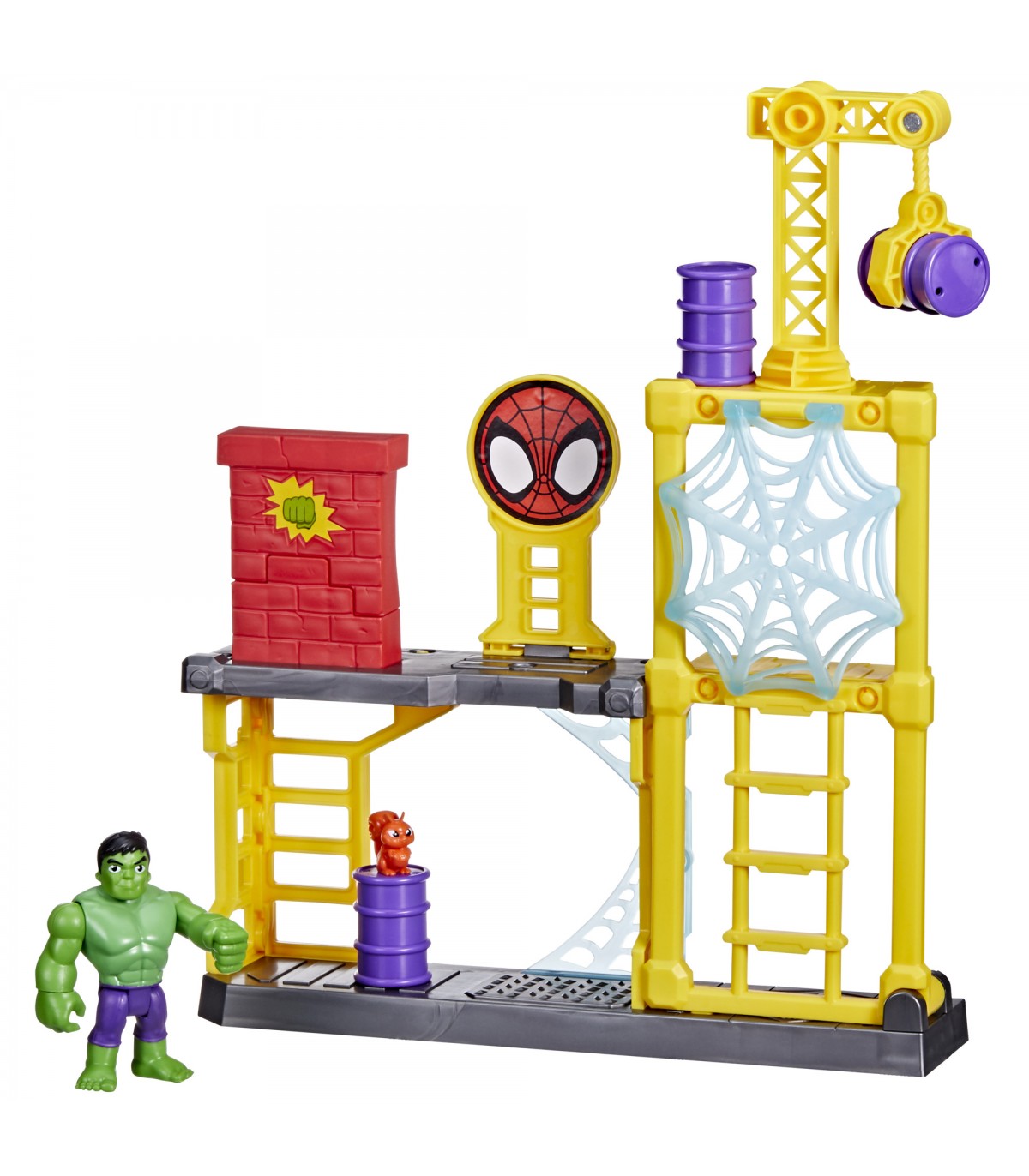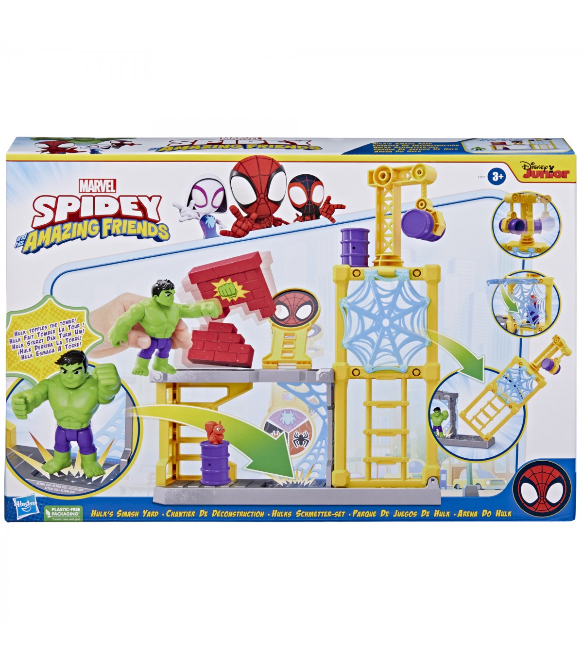 Ispirato alla serie televisiva animata Marvel per età prescolare Spidey e i suoi fantastici amici, il playset Hulk Spaccatutto è pronto a farti divertire a spaccare e distruggere! Questo playset a più piani di Hulk contiene una torre che crolla, un muro da distruggere, una ragnatela- trappola, un'insegna di Spidey che gira, una gru mobile, dei barili e un'action figure di Hulk. Bambini e bambine possono far crollare la torre facendo camminare l'action figure di Hulk sul piano più basso pestando i piedi. Per non smettere di giocare, basta riportare la torre allo stato iniziale! Quando l'action figure di Hulk abbatte il muro di mattoni, questo si spezza in due! Una gru mobile, che deve essere azionata dal bambino, può contenere uno dei 3 barili inclusi, oppure i barili possono essere impilati e poi abbattuti mentre Hulk cerca di catturare un subdolo scoiattolo. Questo giocattolo di Hulk per bambini e bambine dai 3 anni in su è un regalo super divertente per le feste o per il compleanno.