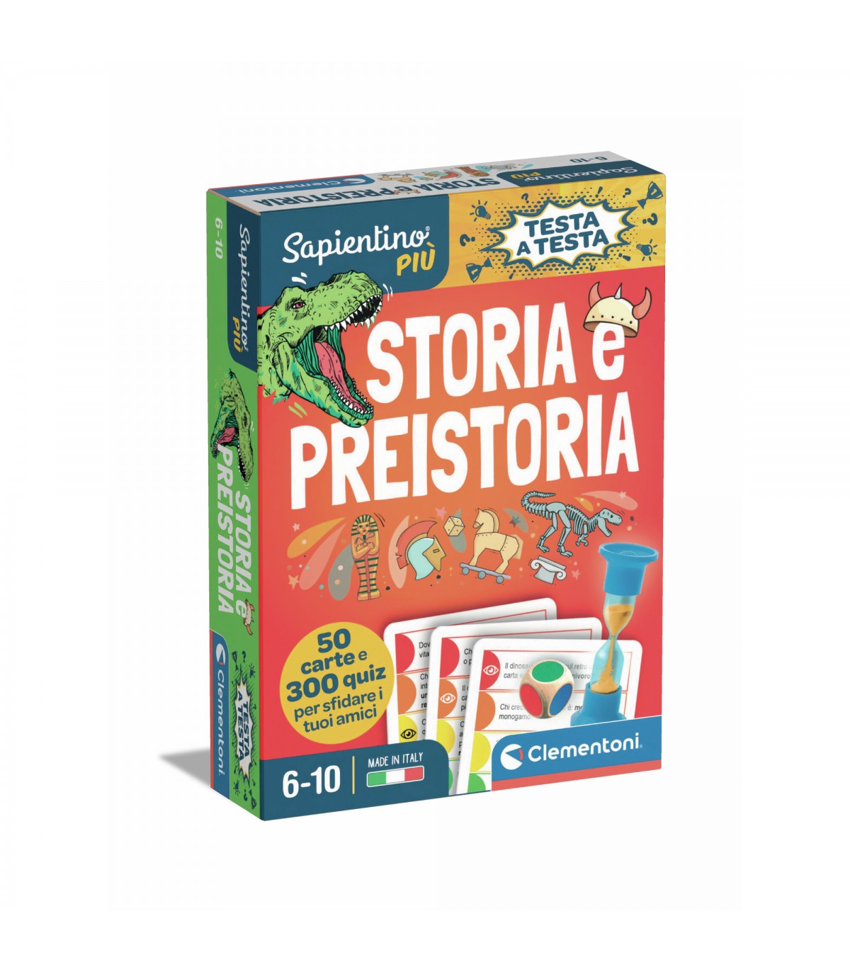 Immergiti in un'avventura educativa unica con Sapientino Testa a Testa Storia e Preistoria. Questo gioco stimolante è progettato per bambini a partire dai 6 anni e offre un modo divertente per apprendere e scoprire le meraviglie del passato. Con un mazzo di 50 carte, ogni domanda ti porterà a esplorare le epoche più affascinanti, dai dinosauri agli eventi storici che hanno plasmato il nostro mondo. Perfetto per piccoli esploratori e curiosi, questo gioco non solo intrattiene, ma favorisce anche l'apprendimento attivo e il pensiero critico.