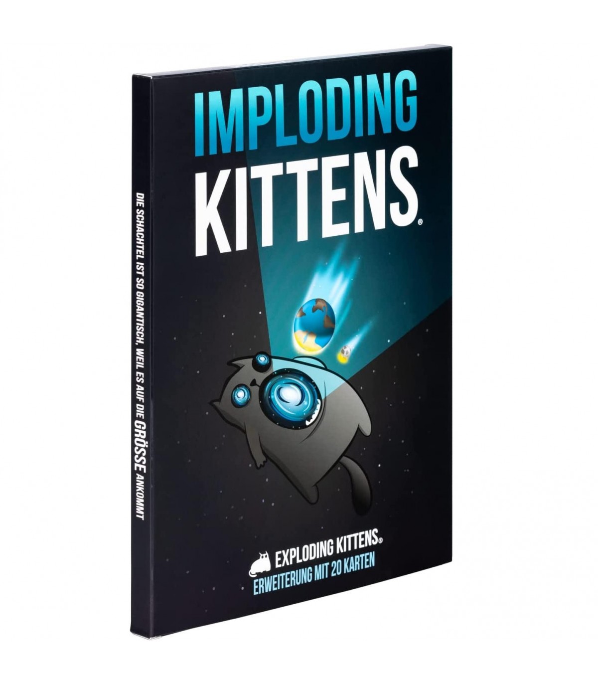Imploding Kittens è la prima espansione per il divertente gioco di gattini esplosivi più celebre di sempre.Grazie a queste nuove carte potrete aumentare il numero massimo di giocatori fino a 6, oltre ad includere una serie di spassosissime nuove azioni di gioco che cambieranno per sempre le vostre strategie, ma soprattutto il modo in cui farete detonare i vostri gattini!!Non che sia una bella cosa eh...Exploding Kittens è un gioco di carte che rappresenta la versione strategica e potentemente felina della roulette russa.Infatti il vincitore sarà colui che riuscirà ad eliminare tutti gli altri giocatori a suon di gattini esplosivi.Ogni giocatore pesca carte fino a quando qualcuno non pesca una carta Exploding Kitten: a quel punto quel qualcuno esplode, è eliminato, è fuori dal gioco.A meno che quel giocatore non abbia una carta Disinnesgatto nella propria mano che possa disinnescare la carta Exploding Kitten.Queste carte possono essere i puntatori laser, i grattini sulla pancia o i sandwich di erba gatta.Tutte le rimanenti carte nel mazzo vengono usate per spostare, attenuare o evitare le carte Exploding Kitten.