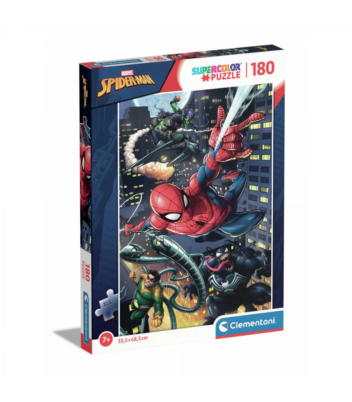Immergiti nell'avventura con il puzzle da 180 pezzi dedicato a Spider Man, un'opera d'arte che cattura l'immaginazione dei più piccoli. Con dimensioni di 48,5 x 33,5 cm, questo puzzle non è solo un gioco, ma un'esperienza che stimola la creatività e l'abilità manuale. I colori vivaci e l'immagine coinvolgente di Spider Man trasformeranno ogni momento di gioco in un viaggio emozionante, mentre i bambini esplorano il fantastico universo dei supereroi. Scegli il divertimento di un'attività che unisce famiglia e amici, creando ricordi indimenticabili.