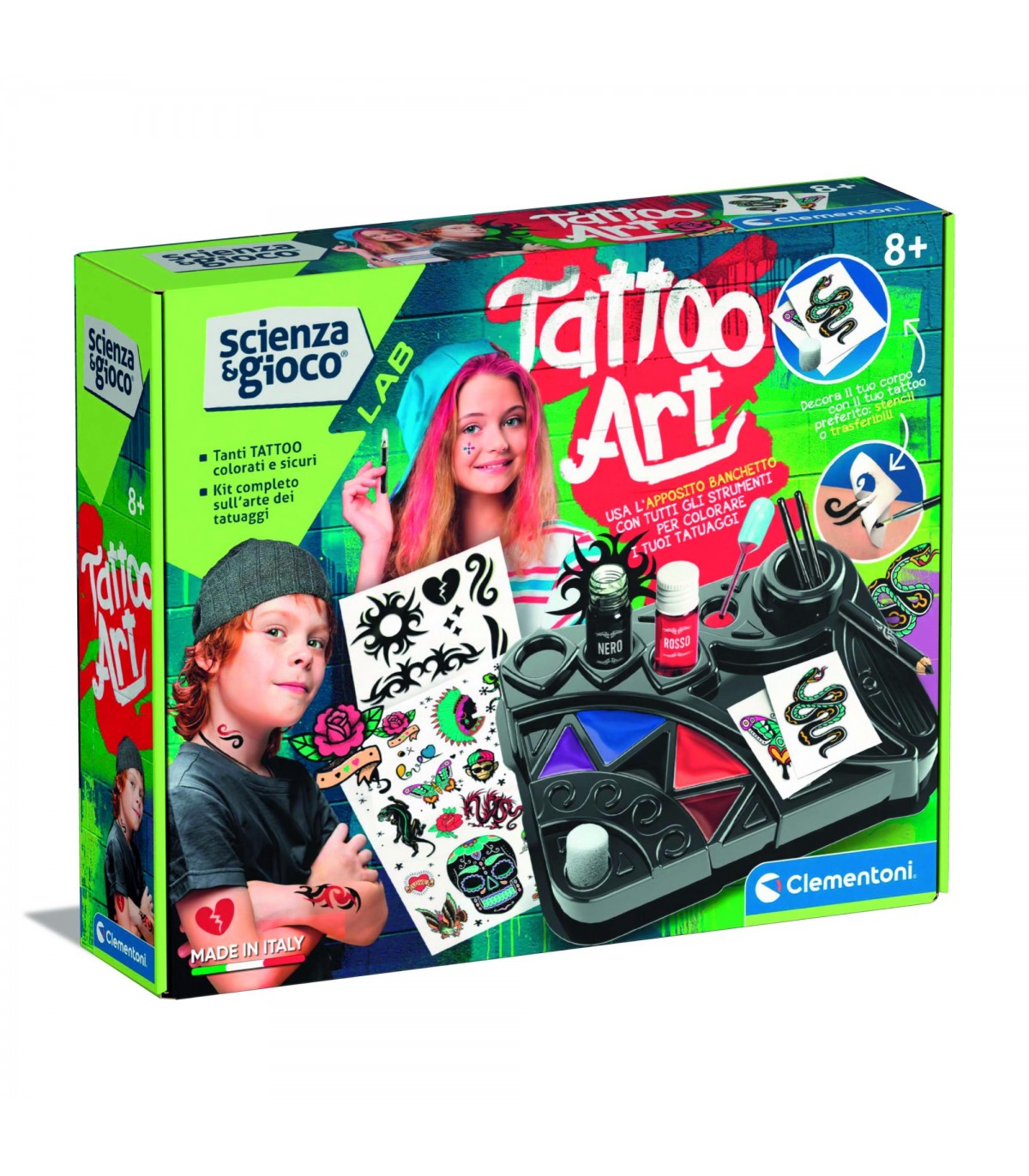 Trasforma la creatività in arte con Scienza Gioco Tattoo Art, un imperdibile kit che offre un'esperienza unica nel suo genere. Ideale per bambini a partire dagli 8 anni, questo set completo include un banchetto da lavoro, pennelli, coloranti liquidi e stencil, permettendo ai piccoli artisti di realizzare tatuaggi alla moda proprio come veri professionisti. Ogni elemento è progettato per stimolare la fantasia, incoraggiando i giovani a esplorare il loro talento artistico e a creare opere d'arte uniche.
