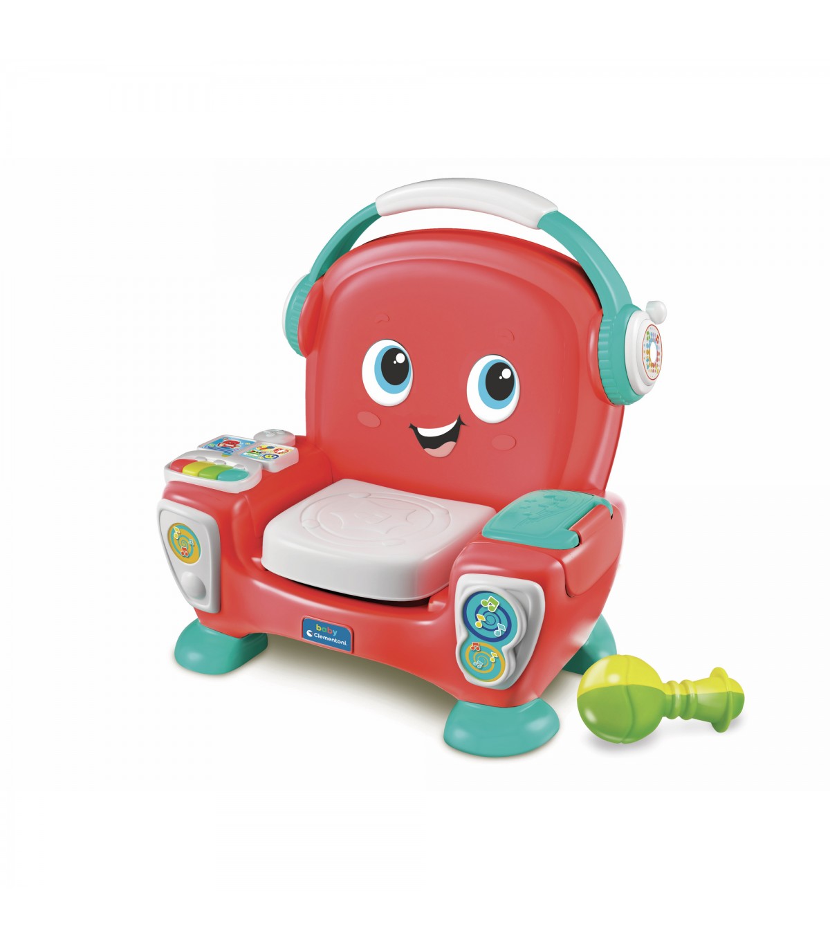Una simpatica poltroncina multiattività e interattiva a tema musica, per far divertire i più piccoli a tutto ritmo! Per giocare, riposare, suonare e cantare, imparando le parole, numeri e colori. E' dotata di una maraca, una pianola e di una consolle con pulsanti touch e uno schermo luminoso. Lo speciale sensore della seduta riconosce quando il bambino si siede e propone musiche coinvolgenti e balletti interattivi, invitandolo a giocare in movimento. La Poltroncina Canta Suona e Balla ha tantissime funzioni per interagire con suoni, musiche, canzoni e parole, per giocare, suonare e sviluppare la manualità. La funzione Balla propone canzoncine interattive, come il ballo della poltroncina, che invita il bambino ad alzarsi, ballare intorno alla sedia e sedersi prima che finisca il conto alla rovescia. La funzione Suona guida il bambino nell'utilizzo della pianola usando i colori dei tasti, per un primo approccio con la musica. Se si gioca con la funzione Canta il bambino è invitato a cantare insieme alla poltroncina una semplice canzone che stimola la lallazione. Con la funzione Relax tante coccole e dolci melodie.