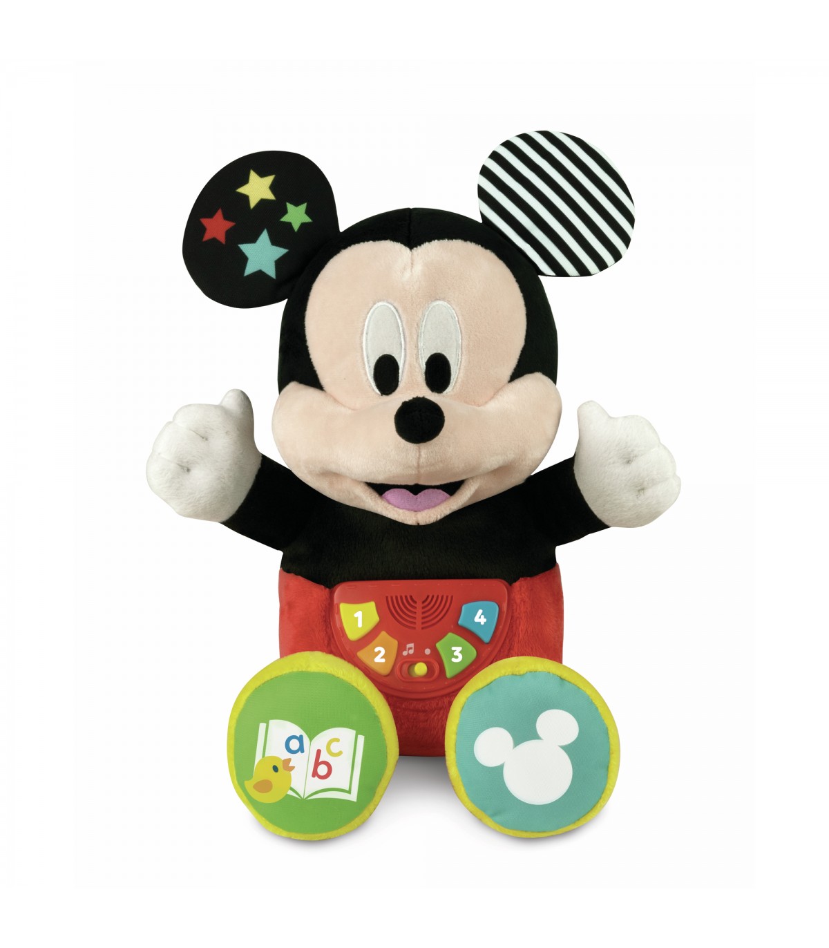 Baby Mickey diventa un amico inseparabile. Il morbido peluche raccontastorie accompagnerà il bambino in ogni momento. Quattro libri inclusi, ognuno caratterizzato da un diverso momento della giornata: risveglio, pappa, gioco e nanna. Premendo i pulsanti sulla pancia del peluche, il bambino potrà ascoltare le storie e seguire le semplici illustrazioni presenti sui libricini. Le storie, utilizzano un linguaggio studiato per i più piccoli, guidandoli alla scoperta di situazioni a loro familiari. Il personaggio in peluche è lavabile in lavatrice.
