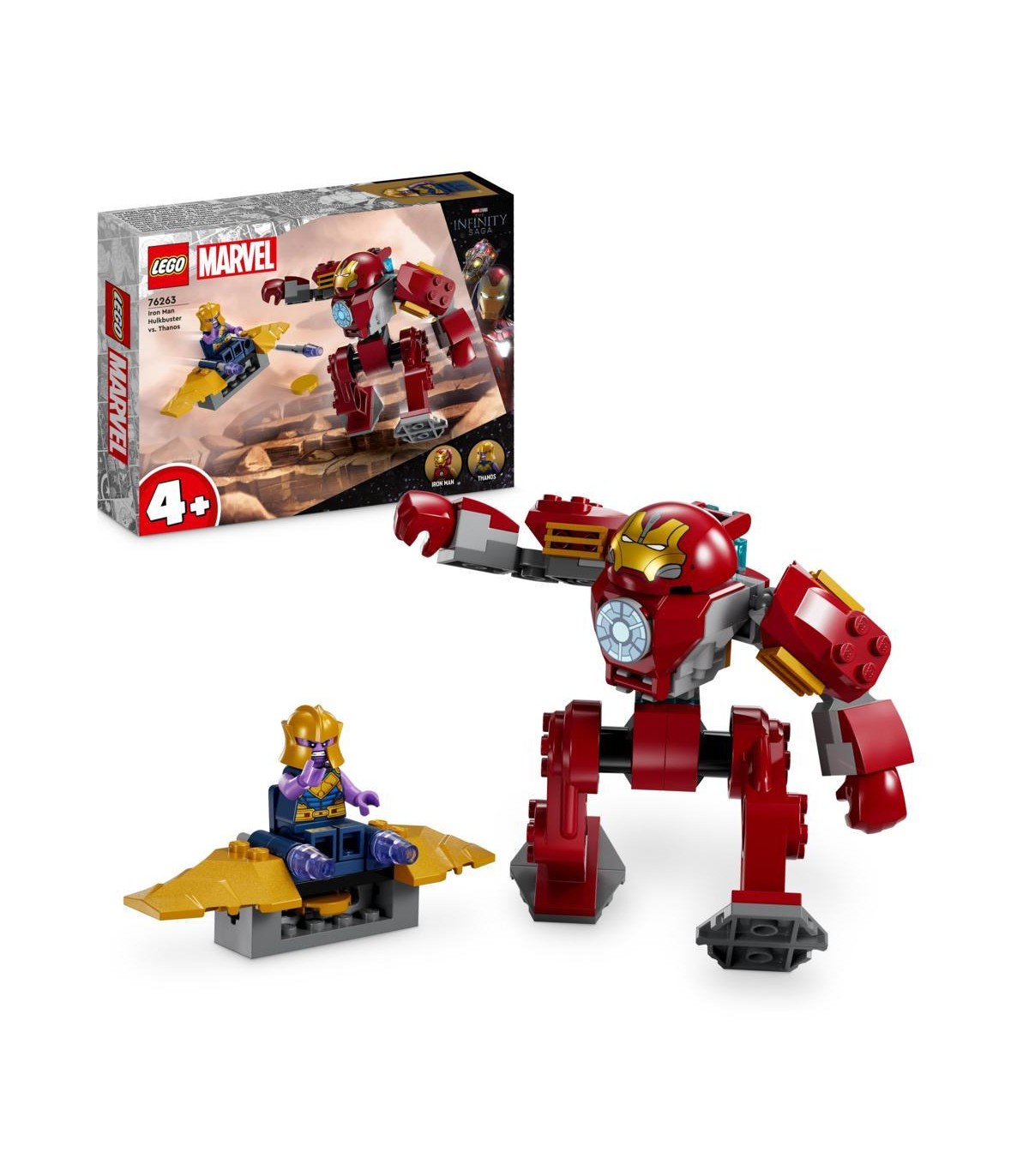 L'Hulkbuster completamente snodabile offre un sedile per la minifigure di Iron Man, mentre il velivolo di Thanos è dotato di un lancia-dischi e un posto per la minifigure. I bambini possono immediatamente tuffarsi in battaglie avvincenti, stimolando il loro spirito di avventura e la loro immaginazione. Ogni giorno diventa un'opportunità per esplorare nuove storie e creare emozionanti avventure. Con il set LEGO Marvel Iron Man Hulkbuster vs. Thanos, il divertimento è assicurato e questo gioco rappresenta un regalo perfetto per ogni giovane fan dei supereroi, pronto a vivere storie straordinarie!