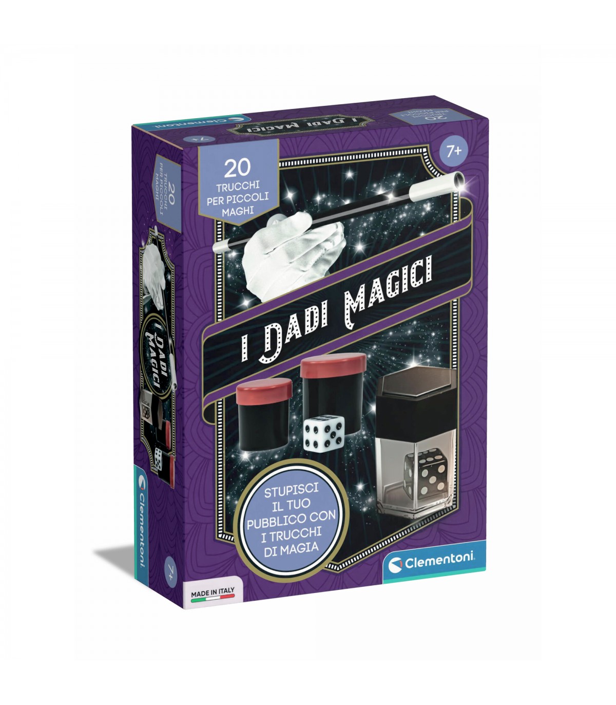 Un cofanetto di giochi di Magia con tanti trucchi! Stupisci i tuoi amici padroneggiando i dadi magici. Con l'incredibile esplosione di dadi trasformi un unico dado in tanti più piccoli. Impara tanti trucchi a partire dalle basi: indovinare la faccia di un dado. Made in Itay