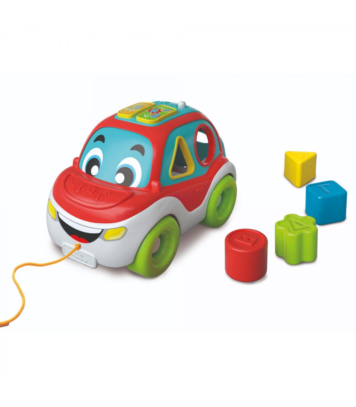 Una simpatica macchinina con inserimento forme, parlante, interattiva e trainabile. Un centro attività 3 in 1 che insegna al bambino il nome delle forme, i colori e le prime lettere. Grazie all'attività di inserimento forme il bambino potrà esercitare la manualità incoraggiato dal feedback sonoro. Una volta completata l'attività il baule si può aprire per recuperare le formine. La macchinina è progettata e sviluppata in Italia, con materiali certificati e sicuri. Con contenuti educativi, canzoni, filastrocche ed effetti sonori.