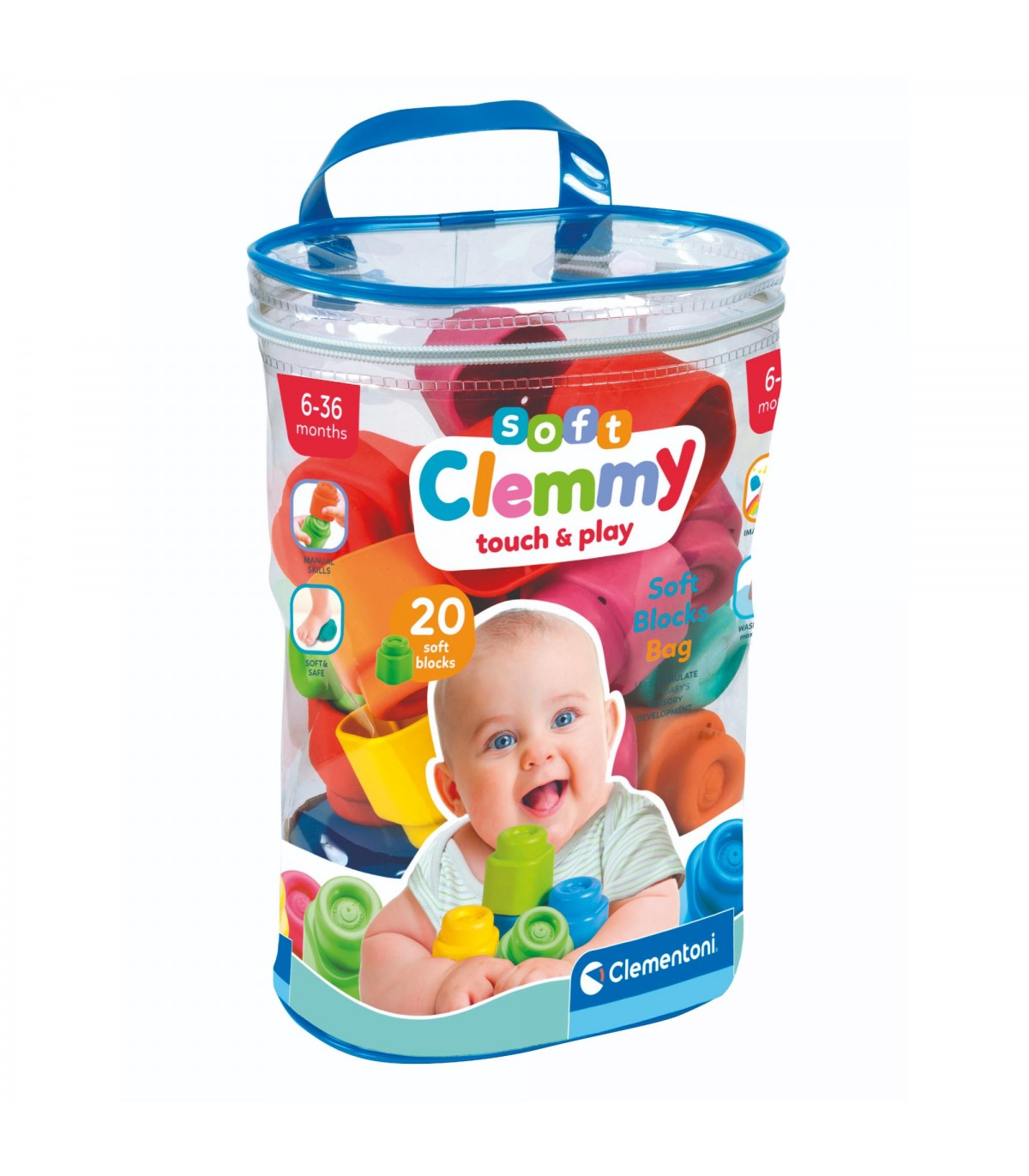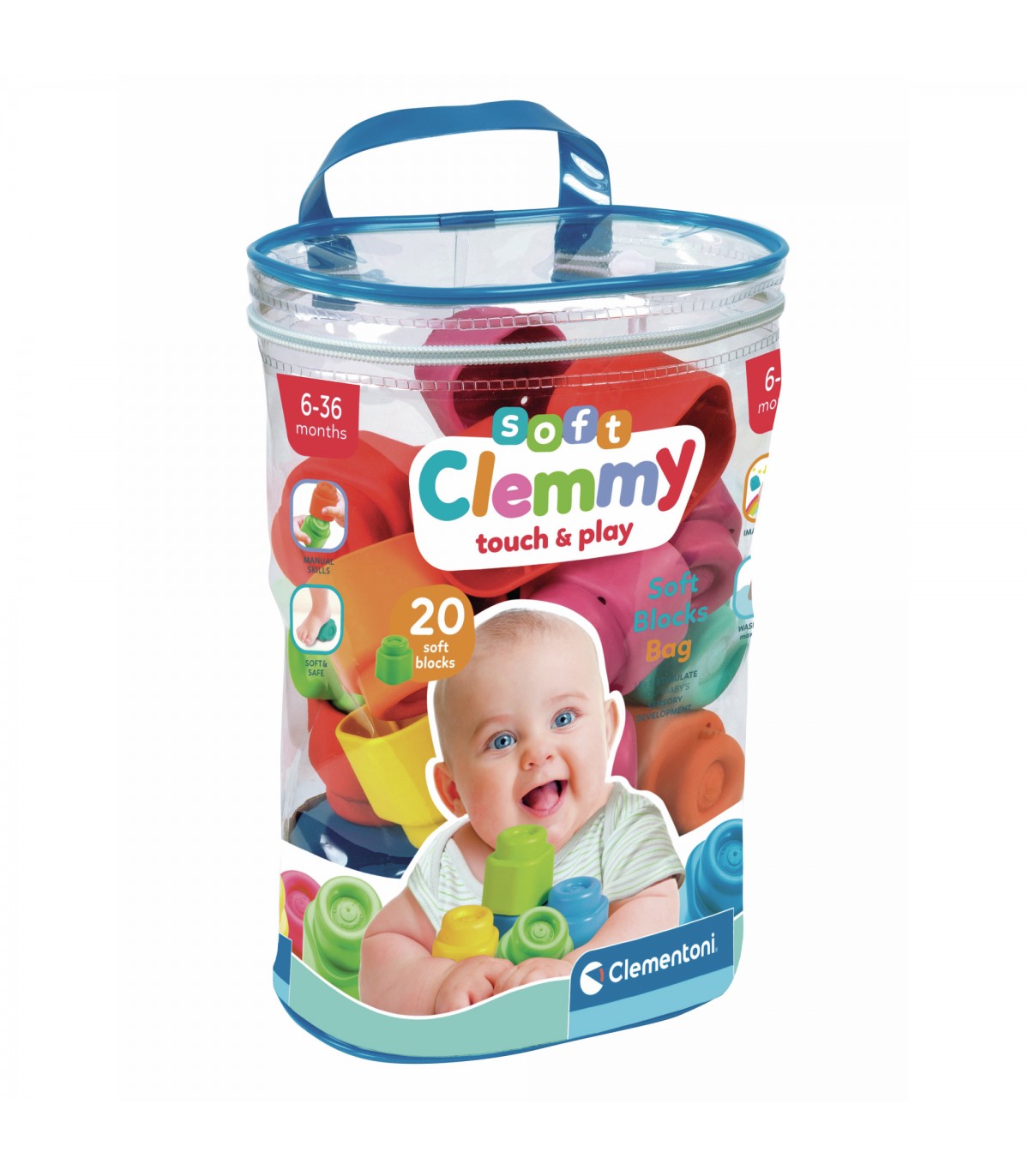 La sacca trasparente contiene 20 Baby Clemmy, morbidissimi e colorati mattoncini studiati per far giocare in assoluta sicurezza i bambini dai 6 ai 18 mesi. I morbidi Baby Clemmy sono ideali per l'esplorazione sensoriale con tanti colori vivaci che stimolano la percezione visiva, l'attenzione e la capacità d'osservazione. Realizzati in materiale atossico, lavabile e profumato, sono facili da afferrare e semplici da impilare e supportano la fantasia e la creatività del bambino. Tutti i mattoncini Clemmy sono prodotti in Italia. Sicuri e lavabili