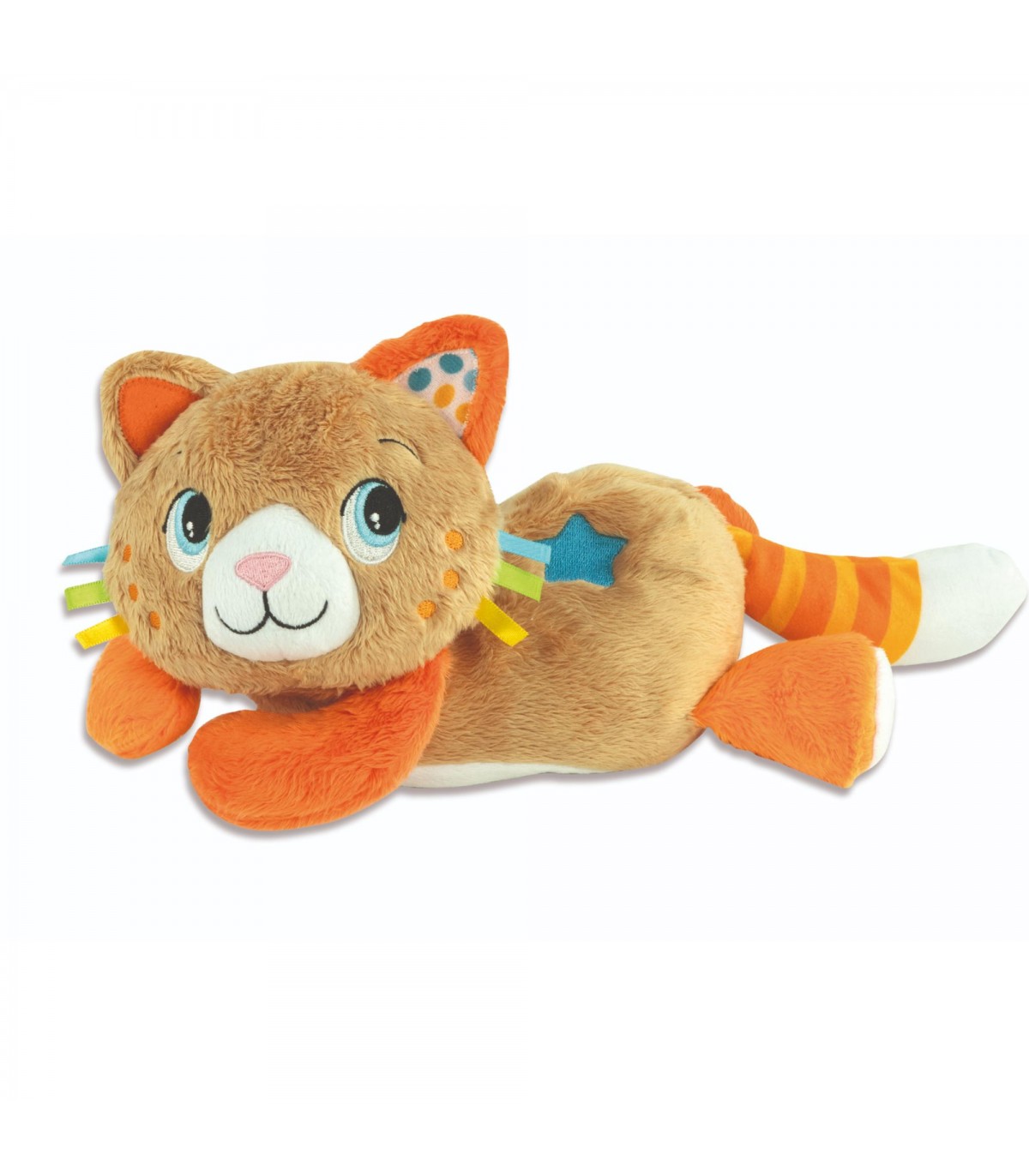 Un morbido personaggio di peluche, appositamente studiato per calmare e rilassare i più piccoli, grazie ad un'innovativa vibrazione dinamica che simula le fusa di un vero gattino La vibrazione che varia di intensità e frequenza, con dolci melodie ed effetti sonori, accompagna i più piccoli in uno stato di calma e rilassamento. Il gattino riproduce melodie appositamente studiate, musiche classiche, suoni bianchi e rumori della natura, andando a ricreare un'atmosfera che concilia il riposo. Il personaggio è lavabile in lavatrice dopo aver rimosso il modulo elettronico. Giocattolo progettato in Italia.