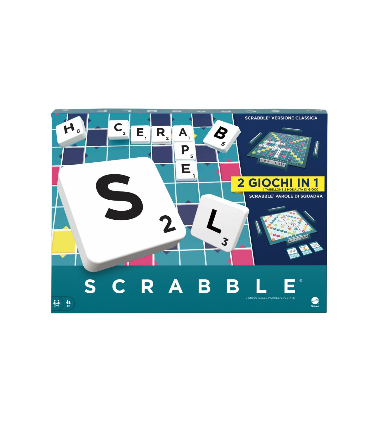 Con Scrabble Ed. Italiana, il divertimento raddoppia! Non solo potrai goderti il classico gioco delle parole crociate, ma avrai anche la possibilità di esplorare Scrabble Parole di Squadra. Questo nuovo formato stimola la cooperazione e il lavoro di squadra, perfetto per chi ama le sfide rapide e dinamiche. Le regole semplici e veloci di Scrabble Parole di Squadra garantiscono che ogni partita sia emozionante e accessibile anche ai nuovi giocatori. Sia che tu sia un veterano del gioco o un principiante, troverai sempre qualcosa di nuovo da imparare e condividere.