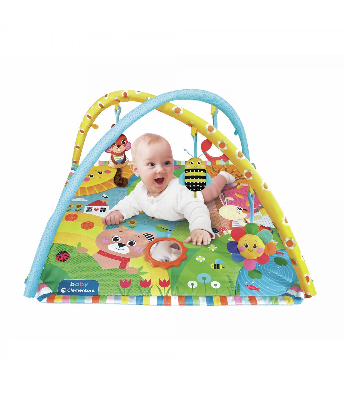 Una palestrina dai colori vivaci per interessare e tenere impegnati i bambini con tante attività sensoriali. Modulo elettronico con due modalità di gioco: una con musiche vivaci per le attività del giorno e una con dolci melodie per accompagnare la nanna. Giochi di luce catturano l'attenzione del bambino durante il gioco tante stelline proiettate e dolci melodie per rilassarsi nella modalità notturna. Tanti accessori diversi pensati per stimolare la vista, il tatto e l'udito del bambino. Modulo Elettronico 2 in 1: utilizzabile sia appeso alla palestrina, sia appoggiato sul comodino per godere della proiezione di stelline.