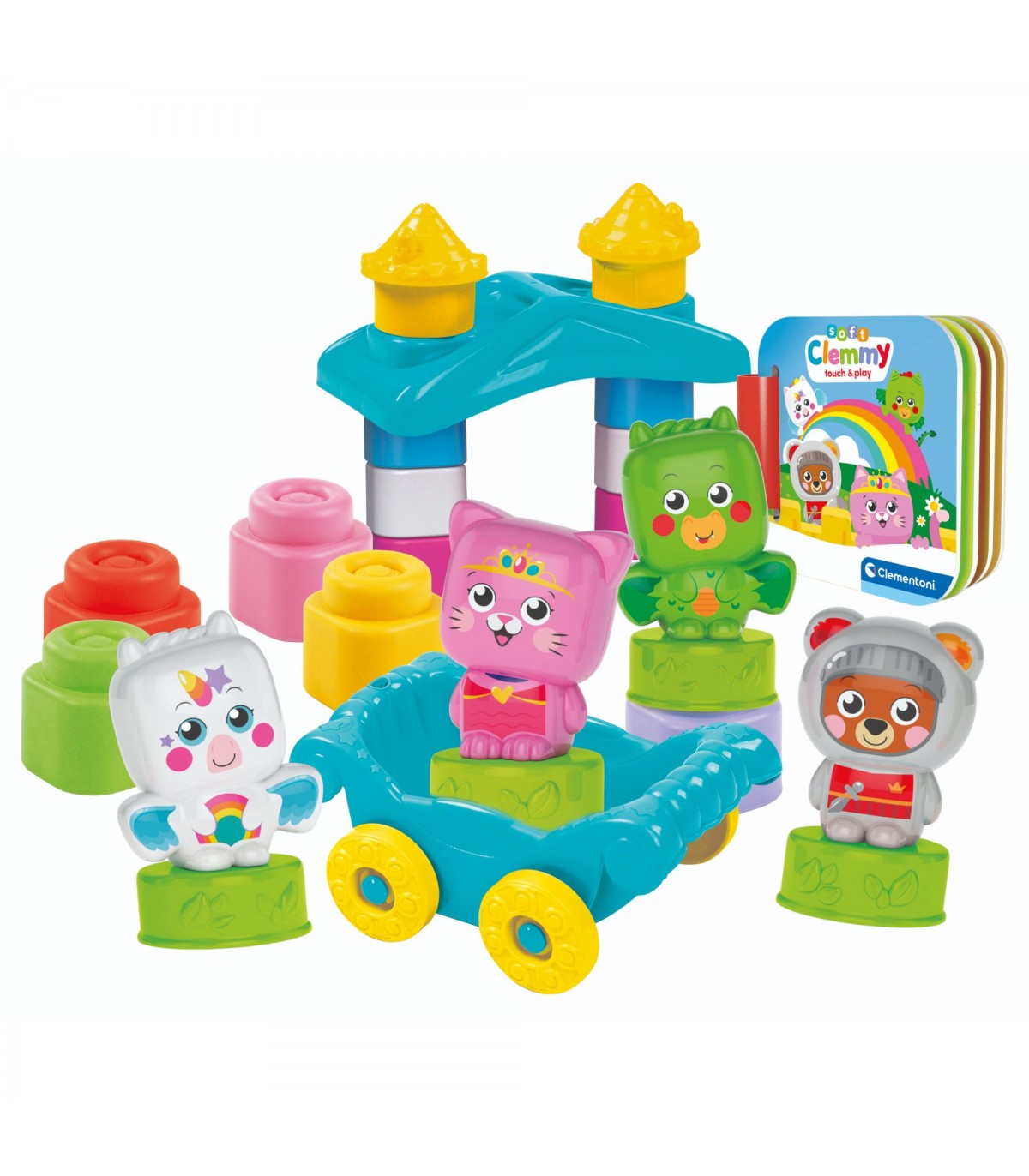 Tanti mattoncini colorati, 4 fantastici personaggi, un castello e una carrozza per immergersi nel libro delle fiabe Clemmy Hero & Princess. I mattoncini Clemmy lavabili e atossici sono pensati per far giocare i più piccoli in assoluta sicurezza. Tanti colori vivaci che stimolano la percezione visiva, l'attenzione e la capacità di osservazione.