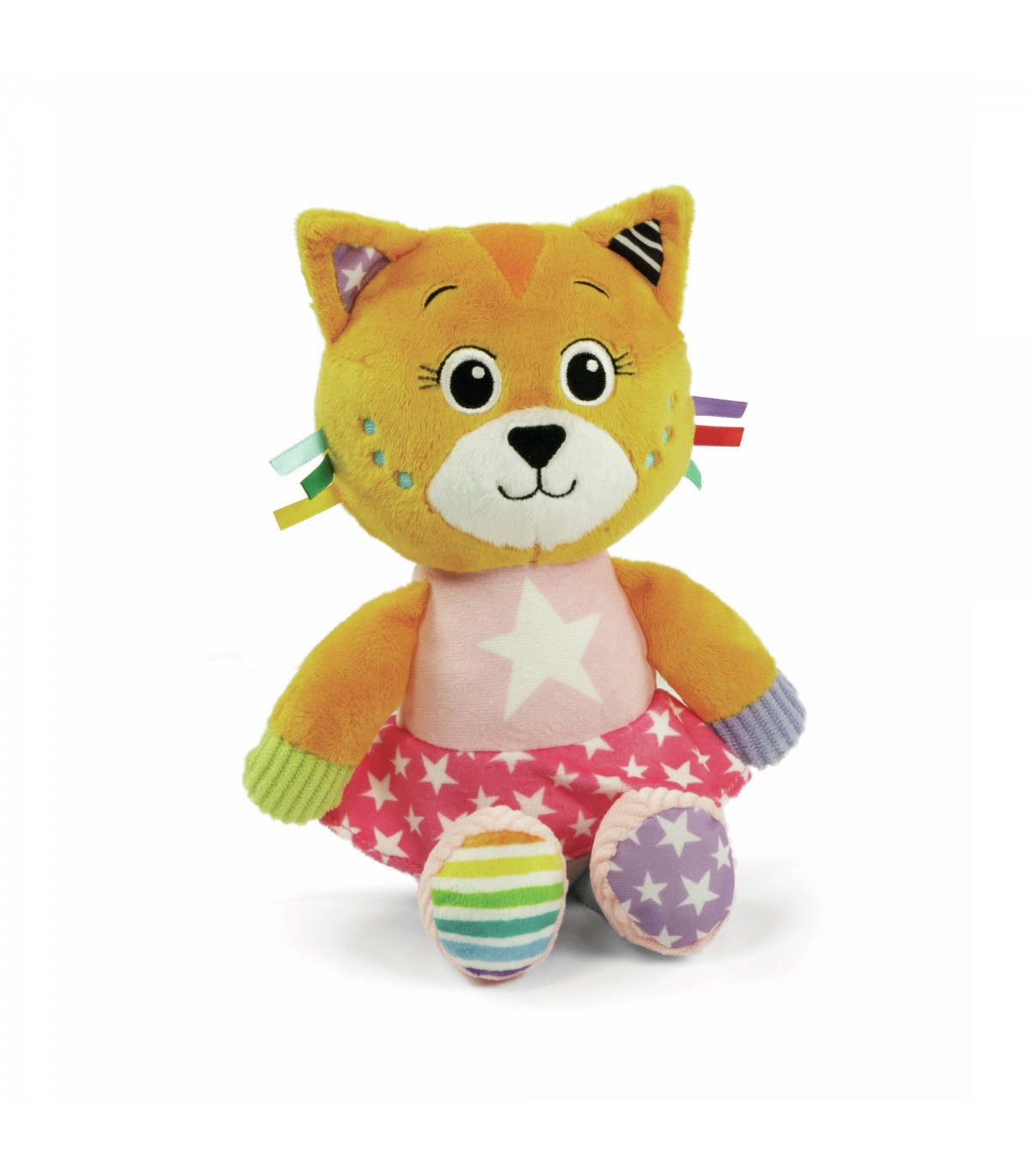 Un morbidissimo gatto peluche pensato per i più piccoli, per farli giocare in un mondo di tenerezza! Il peluche è realizzato con diversi materiali per la stimolazione multisensoriale del piccolo e lo sviluppo della percezione tattile nelle prime fasi di vita. Il compagno perfetto per lo sviluppo del bambino Peluche di 28cm. Lavabile in lavatrice.