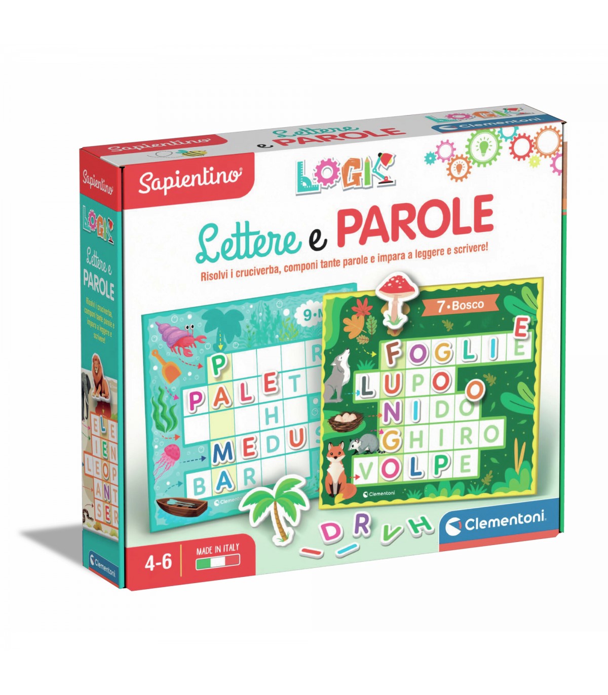 Un simpatico gioco per imparare sviluppare la logica e imparare lette e parole. Tante schede tematiche fronte-retro con cruciverba da completare con le letterine di cartone. I cruciverba sono a difficoltà progressiva e, attraverso il gioco, guidano il bambino nella conoscenza delle lettere e nella composizione delle parole. Pesca una carta, guarda lo scenario e risolvi il cruciverba. Gira la carta per scoprire se è corretto! Con Sapientino Logic i bambini allenano il pensiero logico in modo divertente attraverso attività enigmistiche adatte alla loro età.
