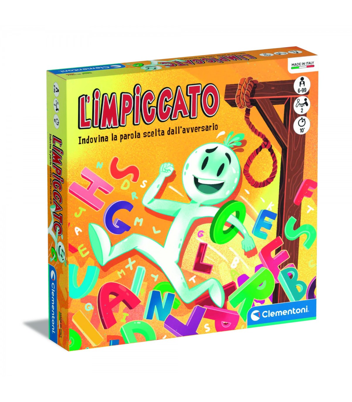 Il gioco delle parole nascoste più famoso di sempre in un avvincente gioco da tavolo! Tante lettere in formato tessera e gli iconici pezzi dell'impiccato per divertirsi insieme. Indovina la parola nascosta per vincere! Il gioco contiene tessere con lettere dell'alfabeto e quelle per costruire la figura dell'impiccato ogni volta che non si indovina una lettera. Made in Italy