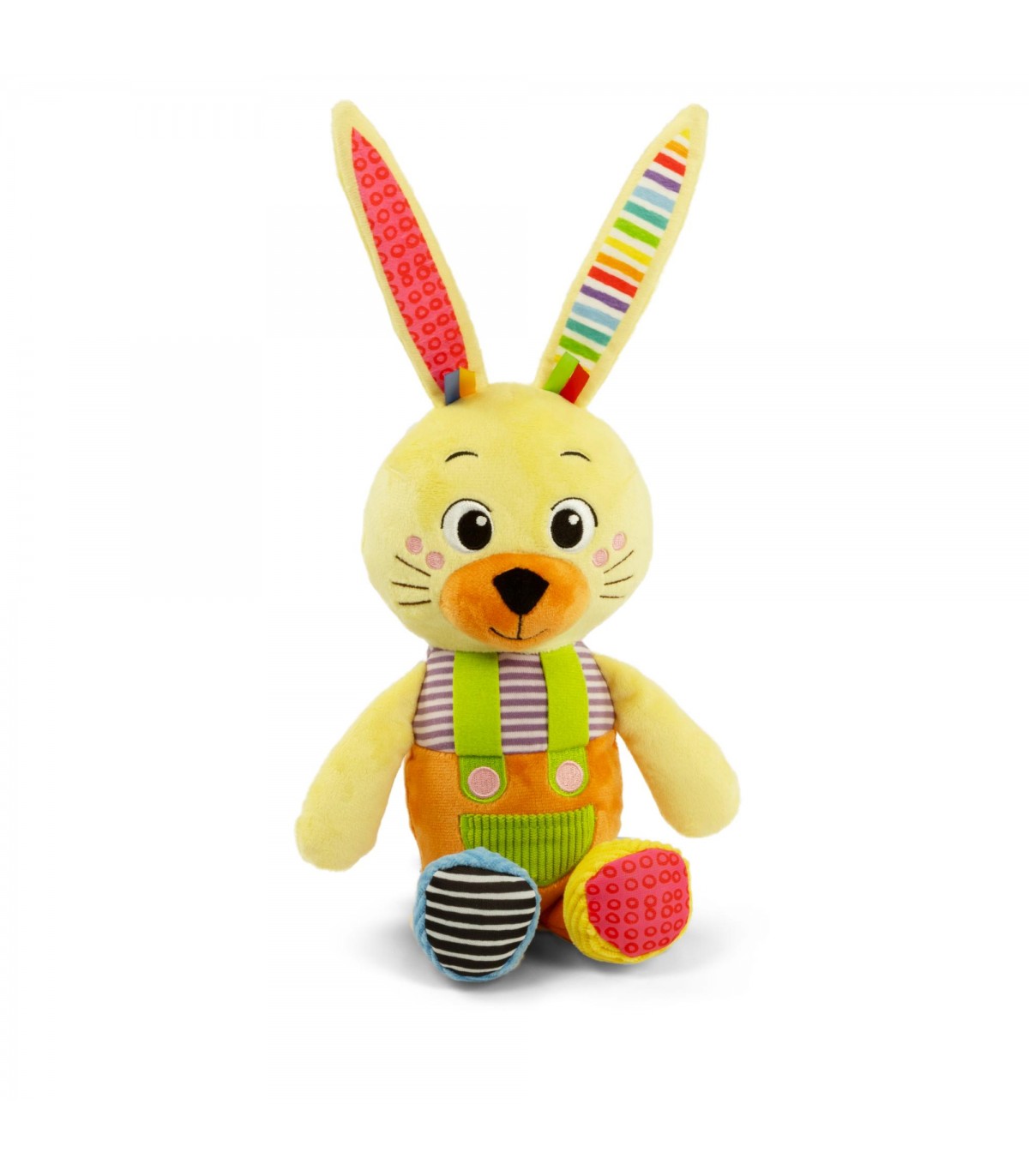 Un morbidissimo coniglio peluche pensato per i più piccoli, per farli giocare in un mondo di tenerezza! Il peluche è realizzato con diversi materiali per la stimolazione multisensoriale del piccolo e lo sviluppo della percezione tattile nelle prime fasi di vita. Il compagno perfetto per lo sviluppo del bambino Plush di 38cm. Lavabile in lavatrice.