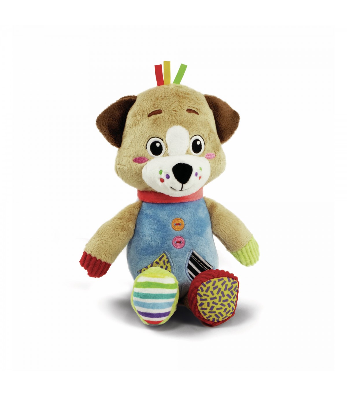 Un morbidissimo cagnolino peluche pensato per i più piccoli, per farli giocare in un mondo di tenerezza! Il peluche è realizzato con diversi materiali per la stimolazione multisensoriale del piccolo e lo sviluppo della percezione tattile nelle prime fasi di vita. Il compagno perfetto per lo sviluppo del bambino Peluche di 28 cm Lavabile in lavatrice.