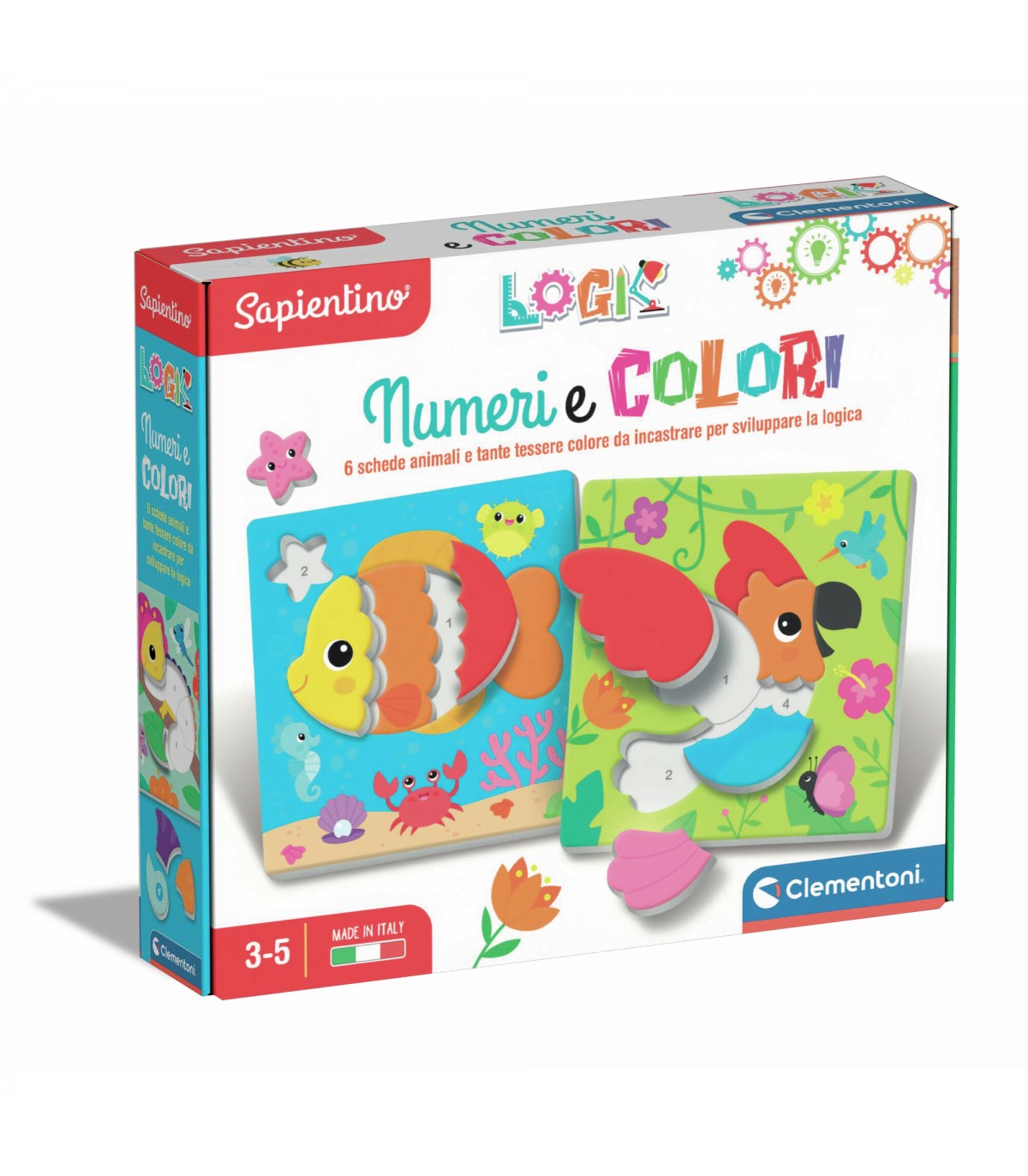 Un gioco di associazione per colorare seguendo i numeri! Diversi puzzle cornice di animali da completare con tante tessere colorate in cartone contrassegnate da numeri. Attraverso la guida dei numeri i bambini compongono l'immagine ricostruendola come un puzzle e imparano a riconoscere numeri e colori. Il bambino dovrà ricomporre l'immagine andando a selezionare la forma corretta dal gruppo di elementi dello stesso colore, identificati da un numero. Con Sapientino Logic i bambini allenano il pensiero logico in modo divertente attraverso attività enigmistiche adatte alla loro età.