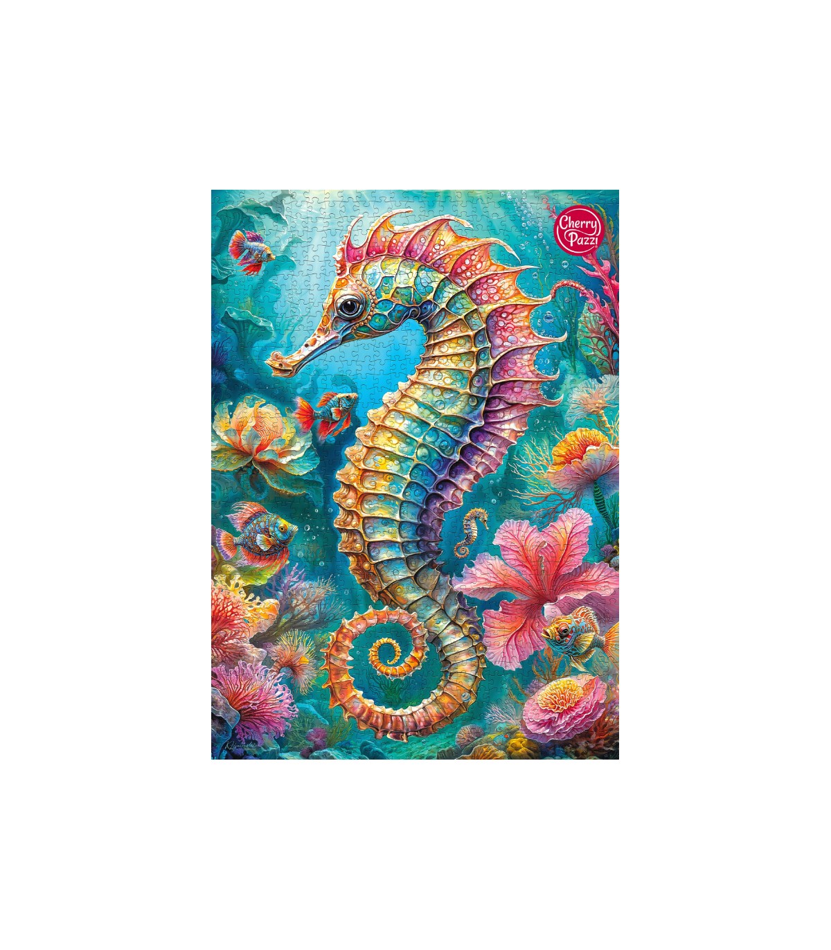 In una vista sottomarina affascinante, un cavalluccio marino si muove agilmente tra coralli vibranti e pesci rapidi. La scena è viva di colore e movimento, mentre la forma delicata del cavalluccio marino si intreccia in un mondo sottomarino incantevole. Circondato dalla bellezza degli abitanti dell'oceano, è un momento avvincente che trasporta gli spettatori in un regno di meraviglia e tranquillità sotto le onde.