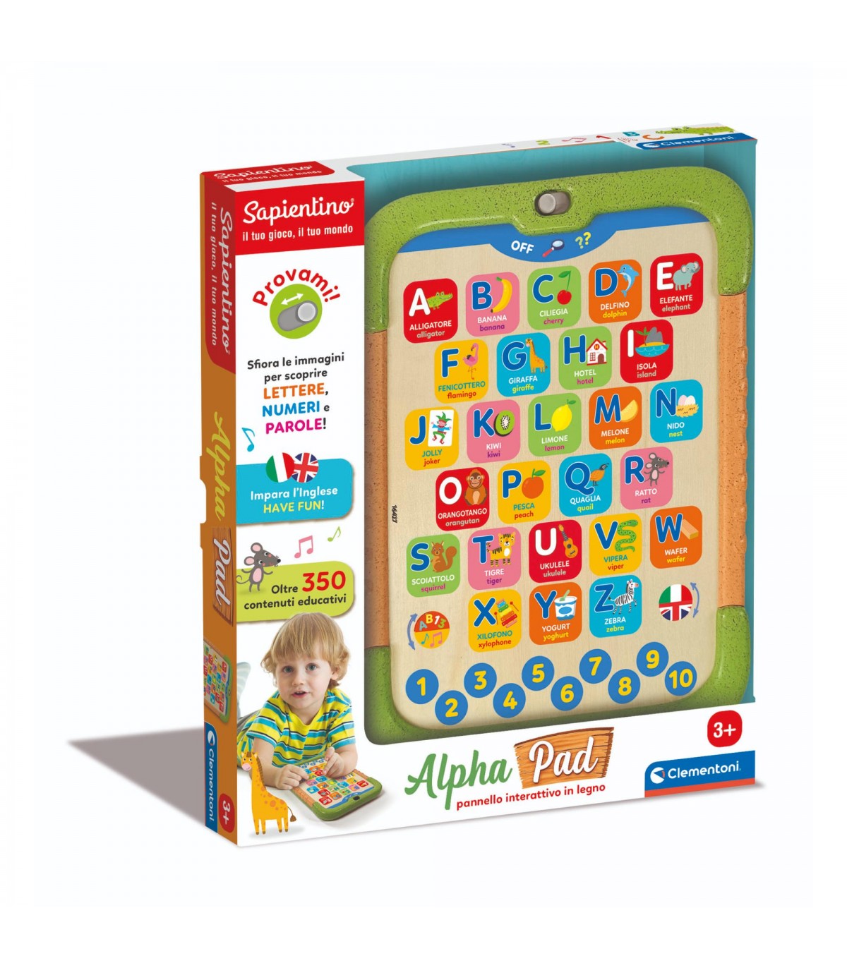 Un alfabetiere elettronico per scoprire l'alfabeto e i numeri. Si può giocare sia in Italiano che in Inglese. Con tre diverse modalità di gioco permette al bambino di conoscere le lettere, il loro suono e le prime parole, i numeri e le quantità. È possibile divertirsi ad ascoltare suoni divertenti e provare a rispondere ai quiz. Il gioco ha un pannello interattivo in vero legno, la plastica del rivestimento contiene fibre di legno che gli conferiscono un piacevole aroma naturale. Con più di 350 contenuti, è perfetto per avvicinarsi all'alfabeto e scoprire nuove parole, stimolando la curiosità e la memoria dei più piccoli.