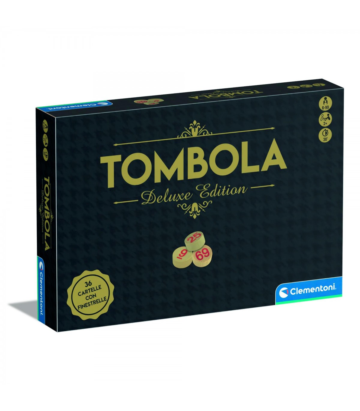 Un classico dei giochi da tavolo in una nuova e pregiata edizione, per giocare e passare le festività natalizie in compagnia di amici e famiglia. Contiene 36 cartelle dotate di finestrelle, un tabellone e il sacchetto con i 90 numeri in legno. Un gioco che non passa mai di moda e che continua a coinvolgere grandi e piccoli.