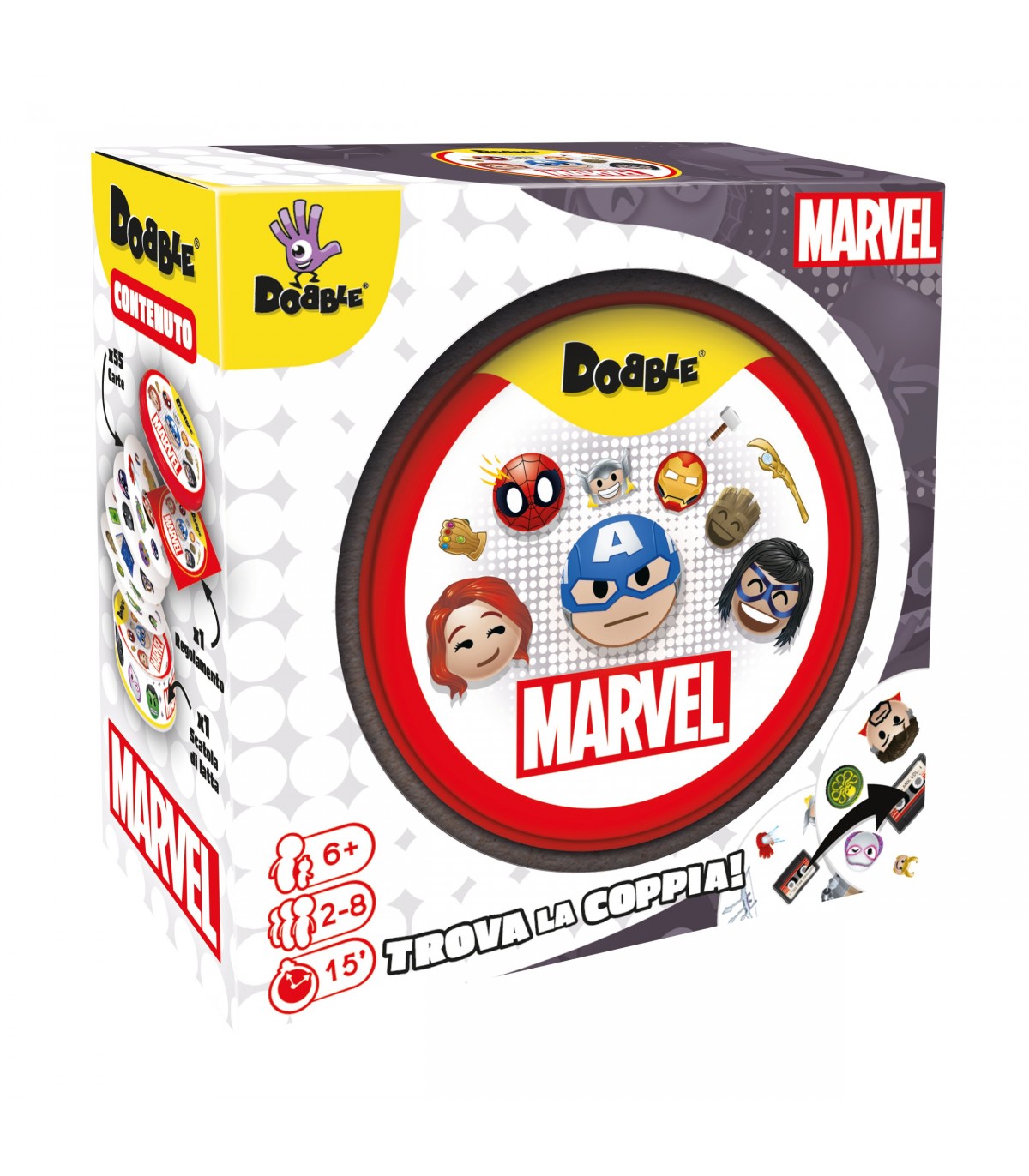 Con Dobble Marvel Emoji, il divertimento è garantito. Non perdere l'occasione di arricchire il tuo tempo libero con un gioco che promette di farvi ridere e competere come mai prima d'ora. Porta a casa questo straordinario gioco e lasciati travolgere dall'energia e dalla gioia che solo Dobble sa offrire!