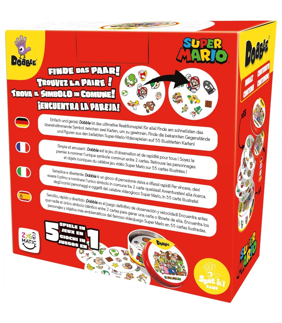 Scopri il divertimento senza fine con Dobble Super Mario (Eco-Sleeve), il gioco di carte che unisce velocità e riflessi in un’epica avventura nel mondo di Super Mario! Perfetto per bambini dai 6 anni in su, puoi sfidare da 2 a 8 giocatori in emozionanti partite della durata di soli 15 minuti. Con regole facili e un’ambientazione accattivante, ogni carta presenta personaggi iconici che stimoleranno la tua competitività e il tuo spirito di squadra. Adatto a tutte le occasioni, da un pomeriggio di gioco in famiglia a serate tra amici, Dobble Super Mario è un must-have per ogni appassionato di giochi da tavolo. Non perdere l'occasione di entrare nel fantastico universo di Mario e di vivere momenti indimenticabili: la tua avventura inizia con una semplice carta!
