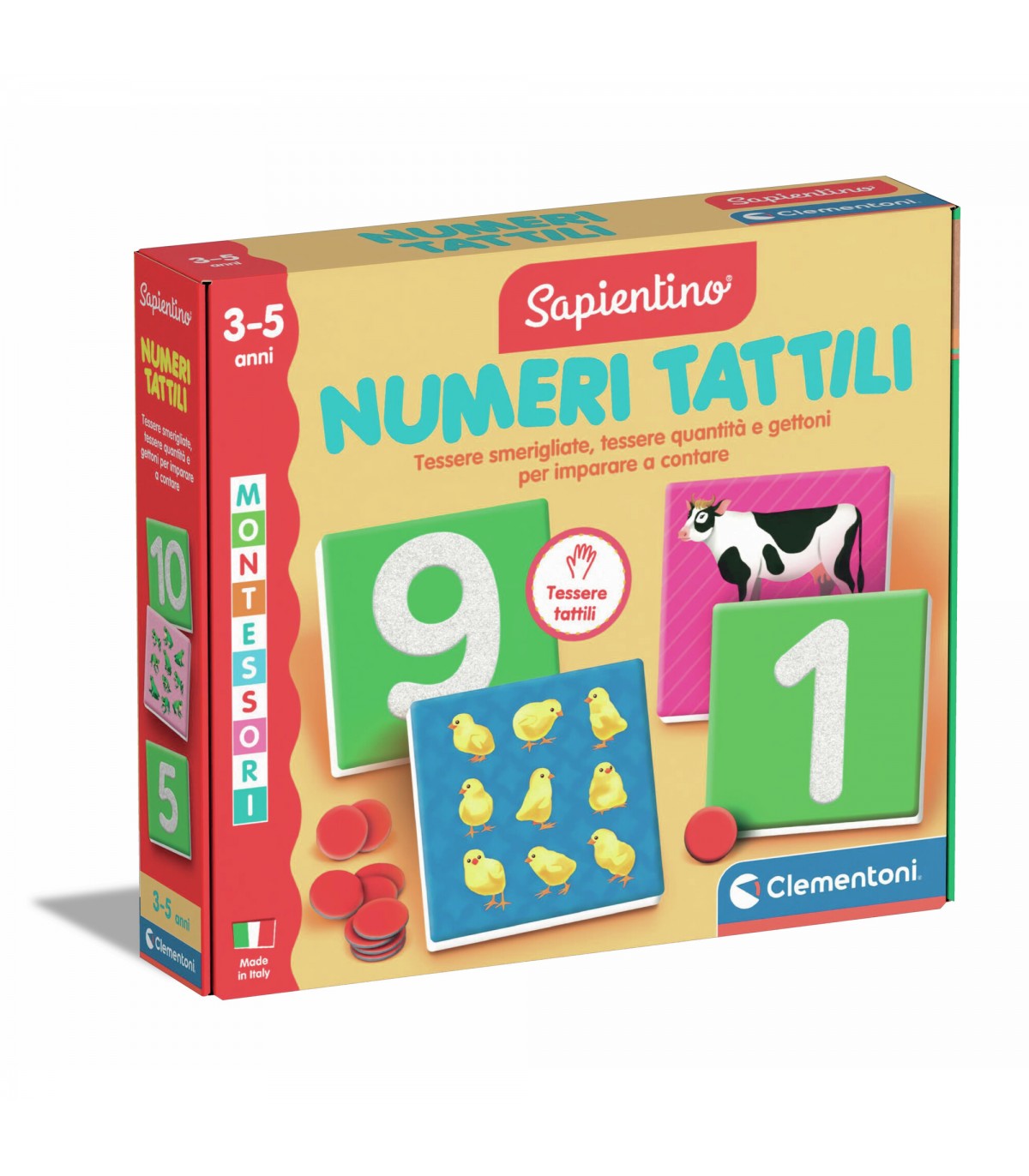 Scopri l'incanto dell'apprendimento con i Numeri Tattili Montessori, un'opera d'arte educativa pensata per i piccoli esploratori a partire dai 3 anni. Questo meraviglioso set incoraggia la curiosità e stimola il senso del tatto, permettendo ai bambini di familiarizzare con i numeri in modo intuitivo e coinvolgente. Ogni cifra è realizzata con materiali di alta qualità, progettata per resistere all'uso quotidiano mentre i bambini si immergono nel mondo dei numeri attraverso il gioco sensoriale. I Numeri Tattili non sono solo un semplice strumento didattico, ma un invito a scoprire le basi della matematica in modo divertente e interattivo. Rendi l'apprendimento un'avventura indimenticabile e osserva la gioia nei loro occhi mentre acquisiscono nuove competenze. Scegli i Numeri Tattili Mont