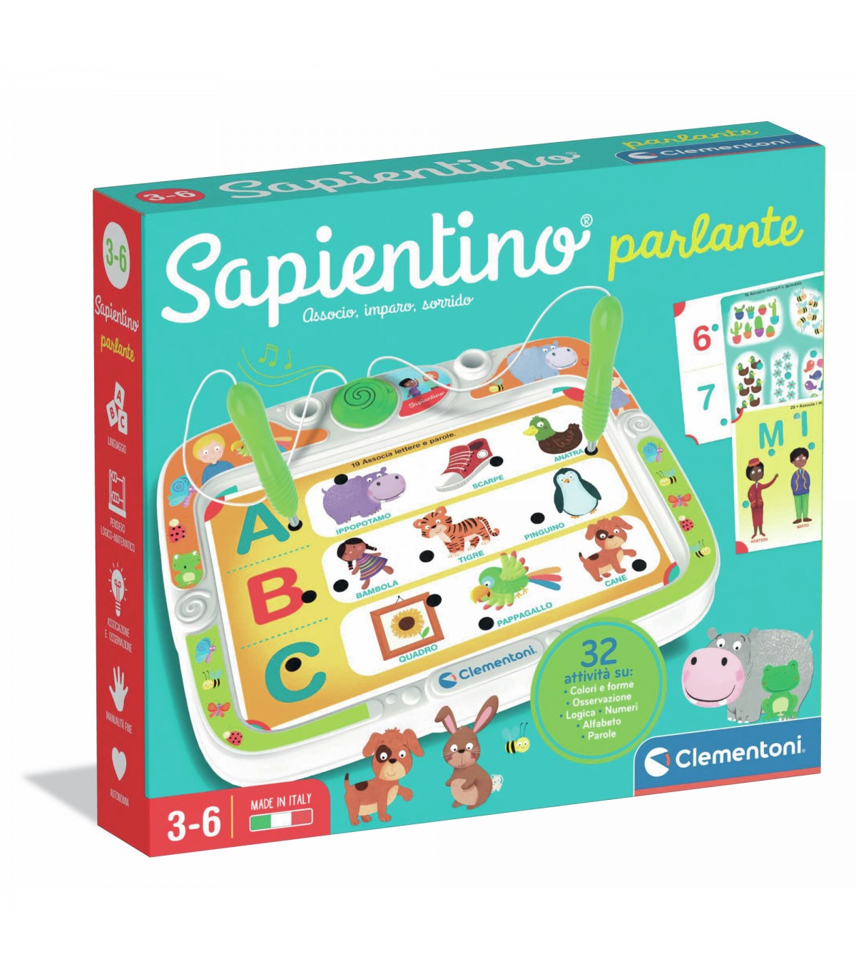 Scopri il magico mondo del Sapientino Parlante, il compagno ideale per i bambini a partire dai 3 anni! Questo straordinario gioco educativo trasforma l'apprendimento in un'avventura coinvolgente, stimolando la curiosità e la creatività dei più piccoli. Con le sue funzioni automatiche, il Sapientino Parlante offre un'esperienza interattiva unica, permettendo ai bambini di esplorare numeri, lettere, forme e colori in modo divertente e coinvolgente. Ogni interazione è accompagnata da suoni e frasi che rendono l'apprendimento ancora più affascinante. Stimola la mente dei tuoi piccoli e aiuta a sviluppare abilità fondamentali in modo ludico. Regalagli momenti di gioia e scoperta con il Sapientino Parlante, perché ogni giorno è un’occasione per imparare giocando!
