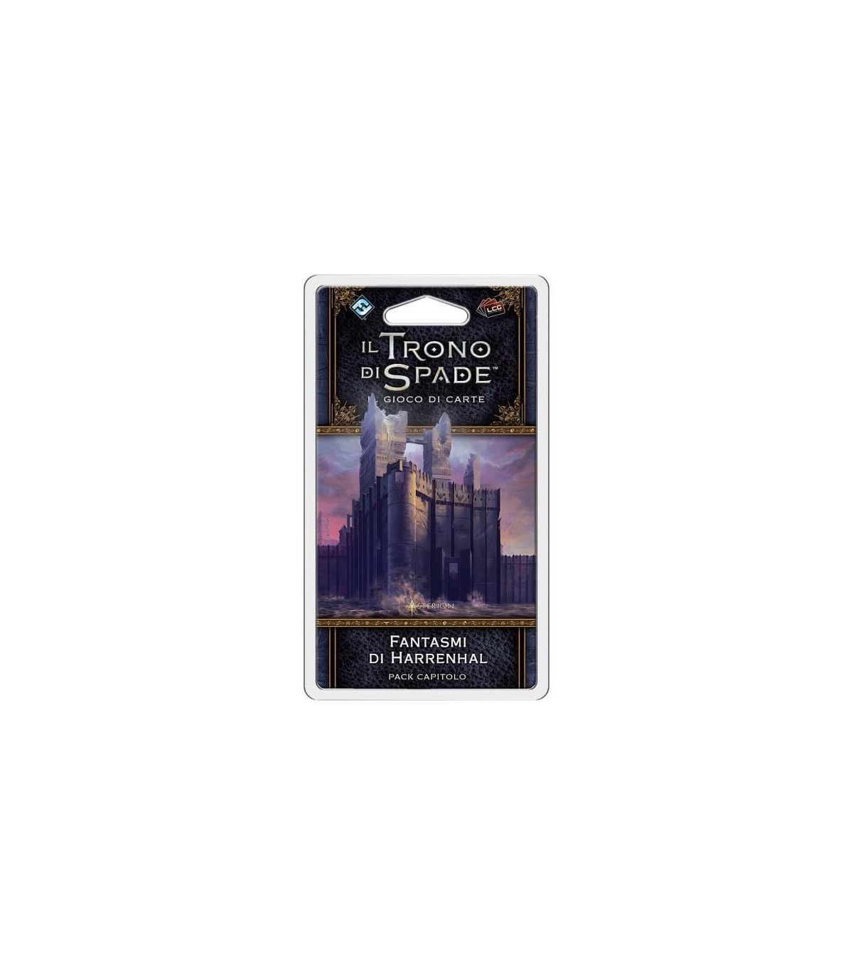 La Guerra dei Cinque Re ha alterato drasticamente la natura dei Sette Regni. Anche se Joffrey Baratheon siede ancora sul trono di Approdo del Re, Stannis Baratheon avanza inesorabilmente dalla terra e dal mare. Renly Baratheon è stato assassinato e le forze di Alto Giardino sono momentaneamente rimaste prive di una guida. Nelle Terre dei Fiumi, la sinistra e maledetta roccaforte di Harrenhal è passata più volte sotto il controllo di Casa Stark e Casa Lannister. Molti sono già morti tra le sue mura, e altri moriranno prima che la guerra finisca.Ora puoi includere anche il tuo nome nella contesa per il controllo di quel vasto castello, grazie a Fantasmi di Harrenhal. La Guerra dei Cinque Re sconvolge ogni angolo del Continente Occidentale: in questa espansione troverai nuove carte che interagiscono con il tratto Re e altre carte che ti aiuteranno a contrastare la drastica carneficina di Valar Morghulis (GT12-80). Infine, in questo pack capitolo incontrerai numerosi personaggi celebri, tra cui Roose Bolton, Brienne di Tarth, Craster, Ser Davos Seaworth, Joffrey Baratheon e Myrcella Baratheon.
