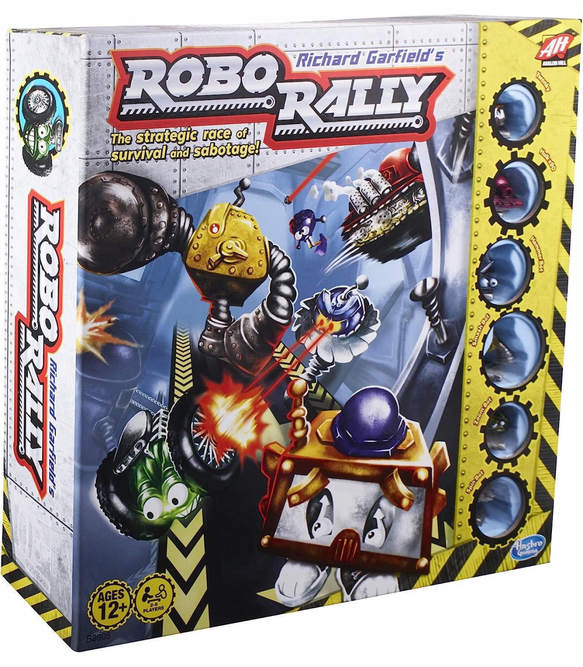 I robot della fabbrica di automobili Robo Rally passano i giorni della settimana a faticare nella linea di assemblaggio. Trascorrono ore a costruire super macchine ad alta velocità per poi non vederle mai in azione. I sabati sera, però, la fabbrica si trasforma in un mondo di macchine pazze e schemi pericolosi in cui i robot partecipano a gare epiche tutte per loro. In questo gioco da tavolo di strategia, avrai bisogno di velocità, astuzia e tanti trucchetti per diventare una leggenda! Ogni giocatore sceglie la pedina di un robot e dirige i suoi movimenti giocando le carte. Man mano che ogni giocatore rivela le carte scelte, si scatena il caos. Laser industriali, pozzi aperti e nastri trasportatori mobili rappresentano gli ostacoli... ma possono anche comportare un vantaggio per i giocatori. Ogni giocatore mira a raggiungere ogni checkpoint in ordine numerico. Il primo giocatore che riuscirà a raggiungere tutti i checkpoint, vince. Il gioco da tavolo con miniature Robo Rally di Avalon Hill è adatto dai 12 anni in su e ogni partita dura circa 45-120 minuti.