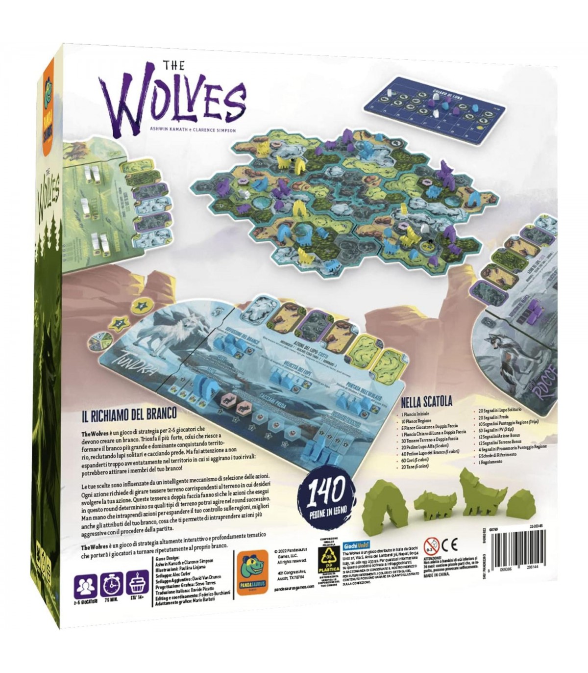Guida il tuo branco alla vittoria in The Wolves, un gioco di strategia dove 2-5 giocatori competono per costruire il branco più forte e dominante, rivendicando territorio, reclutando nuovi lupi e cacciando prede. Tuttavia, bisogna stare attenti a non espandersi troppo rapidamente in territori dove i rivali sono già presenti, altrimenti potrebbero tentare di reclutare membri del tuo branco. Il gioco si basa su un meccanismo di selezione delle azioni che richiede di girare le tessere del terreno corrispondenti al tipo di terreno dove si desidera agire. Queste tessere, a doppia faccia, determinano i tipi di terreno su cui si potrà agire nel turno successivo. Mentre si prendono azioni per espandere il controllo del branco su ogni regione, si aggiornano anche gli attributi del branco, permettendo di prendere azioni più aggressive man mano che il gioco procede. The Wolves è un gioco di strategia altamente interattivo e profondamente tematico che farà divertire i giocatori, portandoli a tornare al branco ancora e ancora.