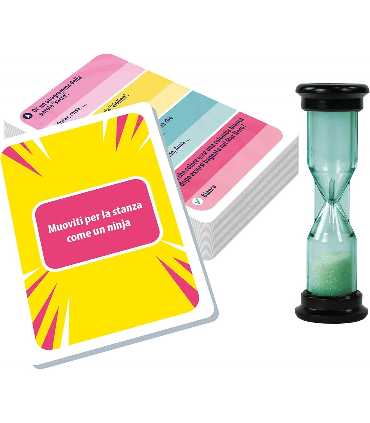 Riuscirete a rispondere alle domande nonostante i disturbatori? Un divertente party game che vi metterà alla prova e in imbarazzo! Rispondi alle domande saltando su una gamba sola o magari parlando come un lord! Tante domande e tante attività che si uniscono per creare le situazioni più disparate. Un party game per le migliori serate in compagnia. Made in Italy