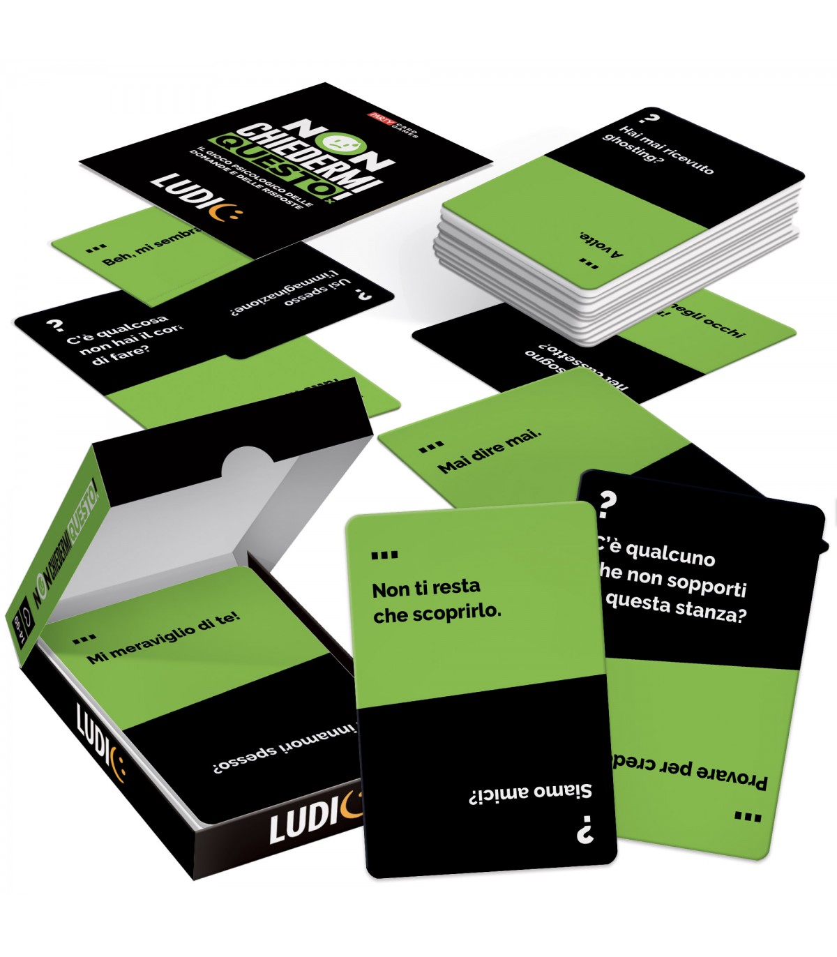 Scegliere Non Chiedermi Questo! significa investire in momenti di gioia e connessione autentica. Lasciati trasportare dalla magia di un gioco che non solo intrattiene, ma arricchisce le relazioni. Rendi ogni incontro indimenticabile e scopri il potere delle parole e delle emozioni – il tuo prossimo party non sarà mai più lo stesso!