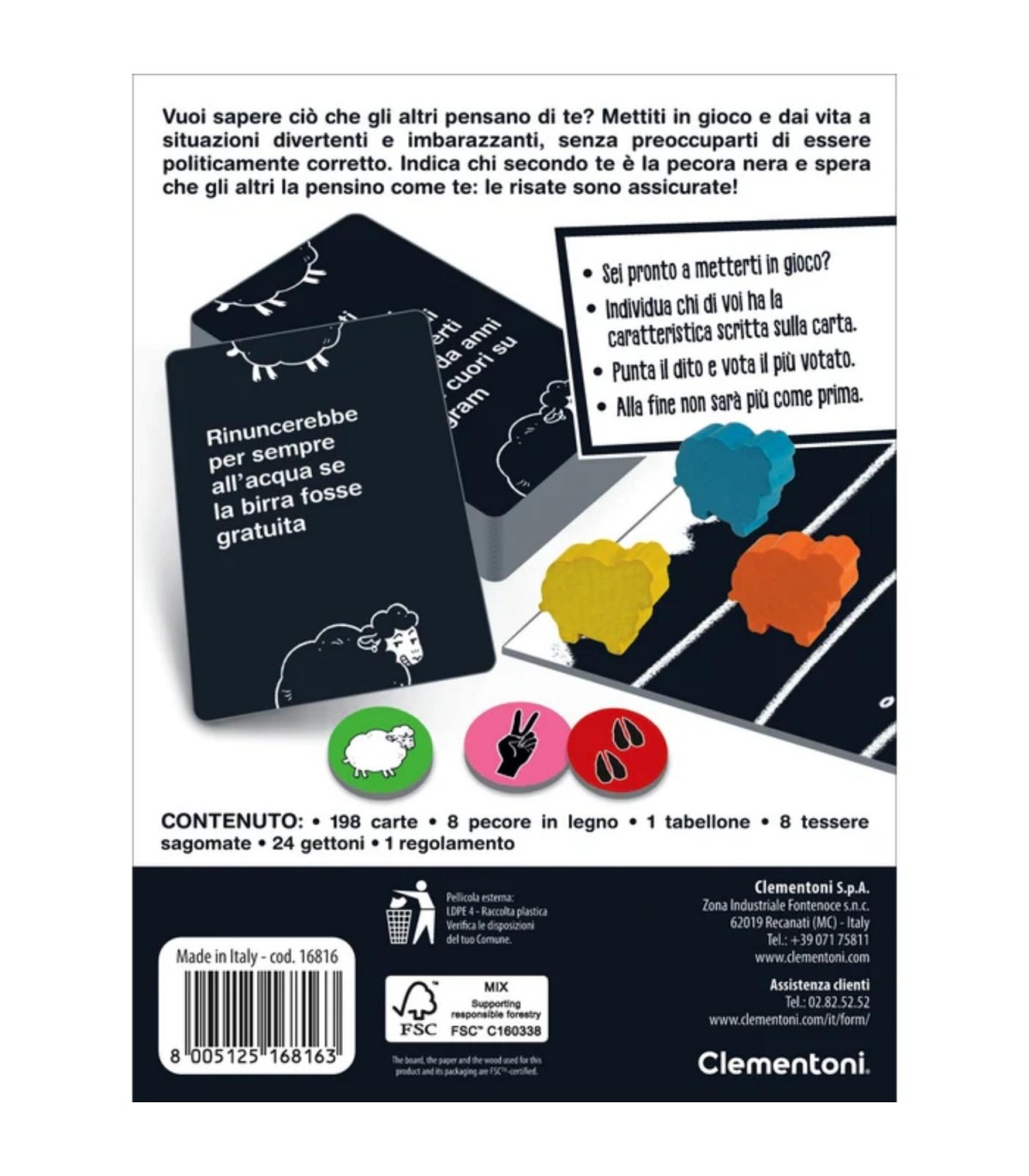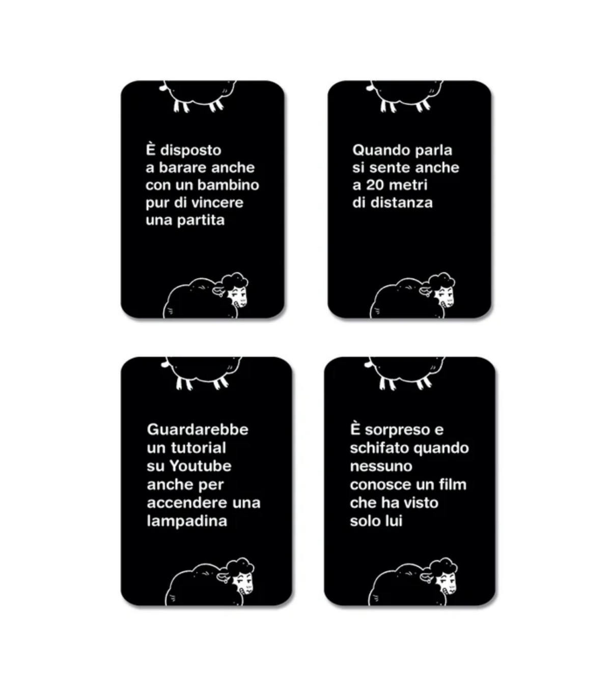 Immagina di essere in una serata con gli amici, circondato da risate e gioia. **La Pecora Nera** si adatta perfettamente a ogni situazione: feste, cene, serate di gioco o anche semplici ritrovi. Grazie alla sua versatilità, puoi facilmente adattarlo al numero di giocatori, rendendolo ideale per piccoli gruppi o grandi feste. Questo gioco è progettato per stimolare l'interazione e la connessione tra le persone, creando ricordi indimenticabili. La sua capacità di coinvolgere tutti, dai più giovani agli adulti, lo rende un vero must-have per chi ama trascorrere del tempo di qualità con i propri cari. Non lasciare che le serate passino senza **La Pecora Nera**: rendi ogni incontro un’occasione speciale!