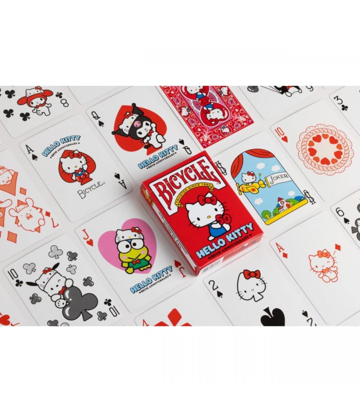 Le **Carte Bicycle - Hello Kitty 50th Anniversary** si distinguono per il loro stile inconfondibile e le caratteristiche uniche. Realizzate con materiali di prima qualità, queste carte sono progettate per durare nel tempo, mantenendo la loro bellezza e funzionalità anche dopo numerosi utilizzi. Ogni mazzo è arricchito da illustrazioni esclusive, che celebrano il 50° anniversario di Hello Kitty, creando un legame speciale con i fan di tutte le età. Non solo sono perfette per il gioco, ma possono anche diventare un elemento decorativo per la tua collezione, un regalo ideale per gli amanti di Hello Kitty e un must-have per ogni appassionato di carte.