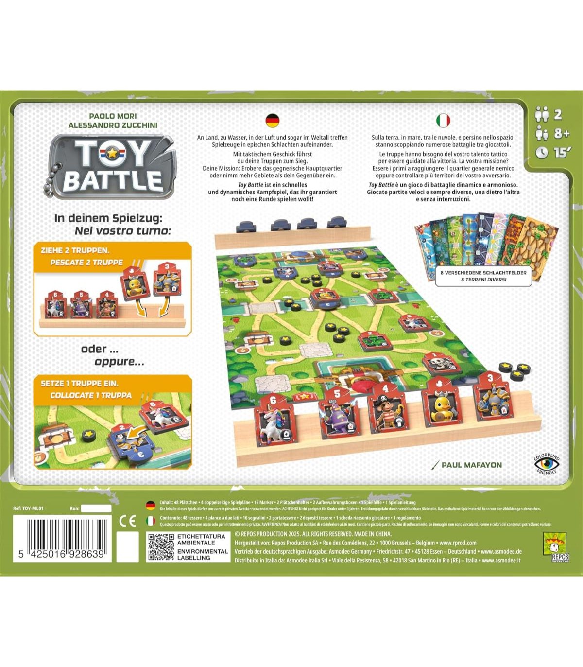 Entrate nel mondo di **Toy Battle**, dove ogni mossa conta e ogni decisione può cambiare le sorti della vostra battaglia! Questo entusiasmante gioco da tavolo è progettato per **2 giocatori**, rendendolo perfetto per sfide avvincenti con amici o familiari. In soli **15 minuti**, potrete immergervi in un'esperienza ludica che stimola la mente e alimenta la competizione. Grazie alla sua **complessità leggera**, Toy Battle è accessibile a tutti, dagli stratega esperto al neofita, assicurando ore di divertimento e interazione sociale. Non è solo un gioco, è un modo per costruire legami attraverso il divertimento e la sfida!