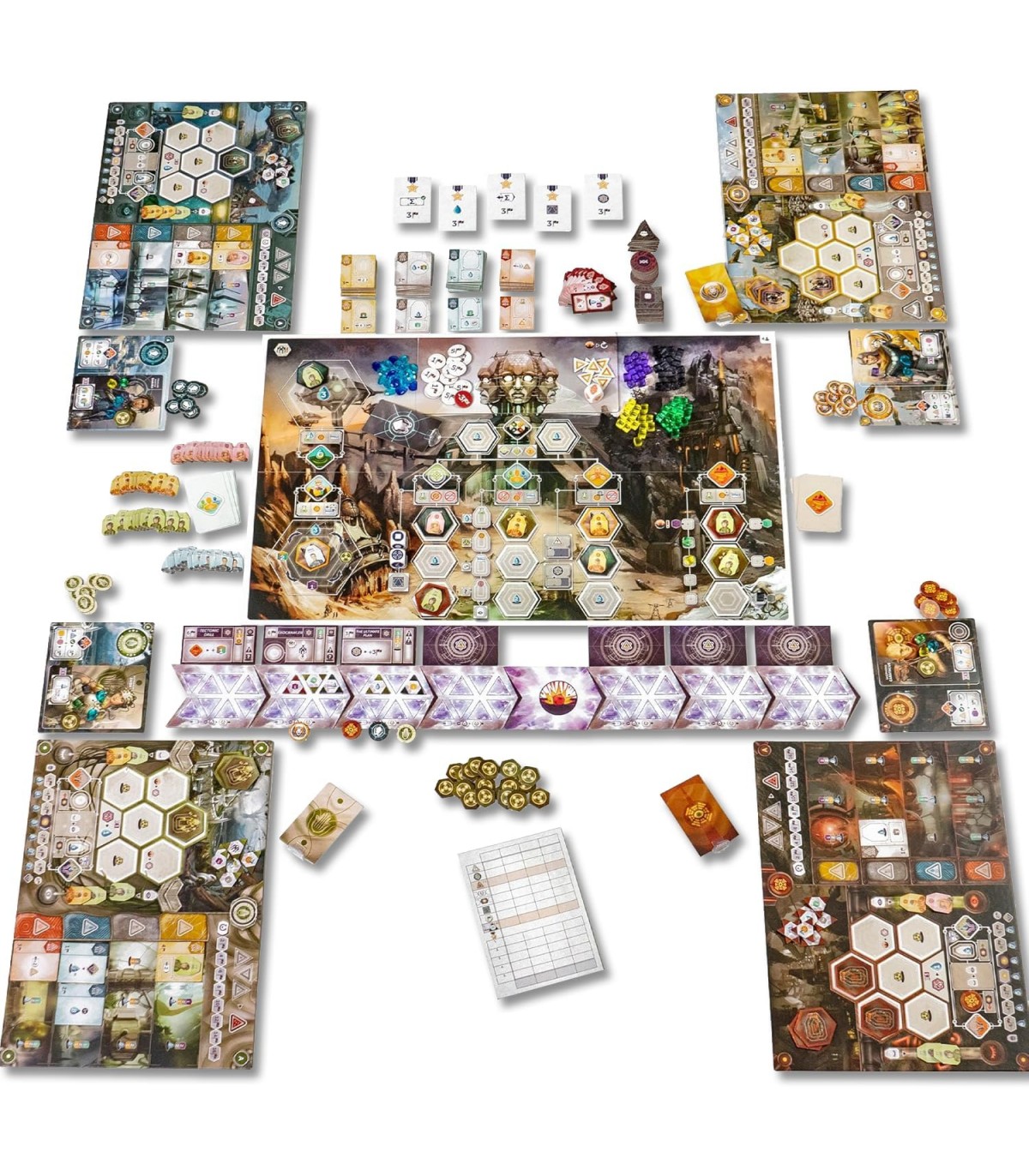 Anachrony è progettato per essere giocato da 1 a 4 giocatori, rendendolo perfetto per serate di gioco con amici o sfide solitarie. Con una durata di circa 90 minuti, ogni sessione è un intenso viaggio di pianificazione e adattamento. Le meccaniche di contratti e eventi si intrecciano in un'esperienza di gioco che stimola la mente e accende la competitività. La variabilità del setup assicura che ogni partita sia unica, mantenendo alta la curiosità e la voglia di giocare.