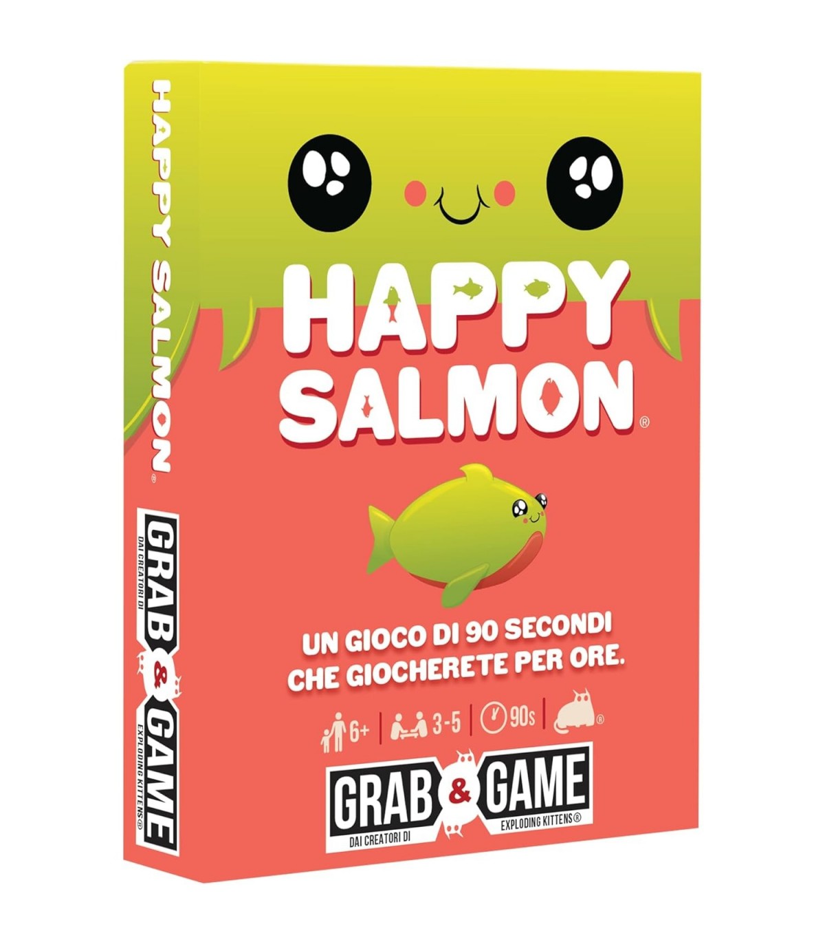 Happy Salmon - Grab & Game è l'essenza del divertimento. Questo gioco di società dinamico e coinvolgente è perfetto per famiglie, amici e feste, creando momenti indimenticabili in ogni occasione. Con semplici regole e un ritmo frenetico, ogni partecipante si scambia carte e si muove come un salmone saltellante, portando il divertimento a livelli straordinari. Non importa l'età, tutti possono unirsi e godere di risate e competizione mentre si sfidano a chi sarà il primo a completare le proprie missioni. Happy Salmon non è solo un gioco, è un'esperienza che unisce e crea legami.