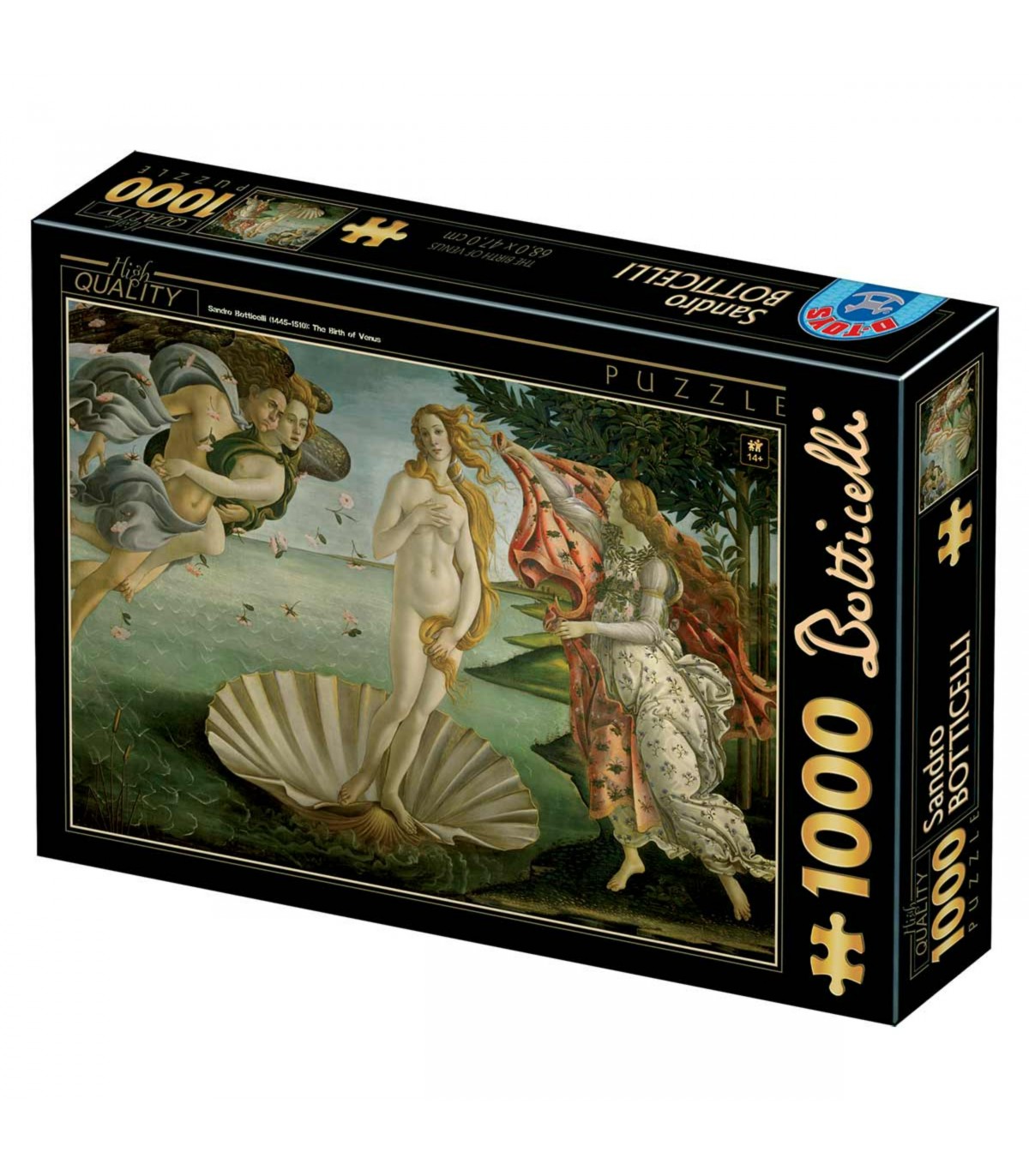 Porta la bellezza classica del Rinascimento nella tua casa con questo puzzle da 1000 pezzi raffigurante La Nascita di Venere di Sandro Botticelli. Le dimensioni di 68 x 47 cm e l'eleganza dei dettagli di questo capolavoro rinascimentale offrono una sfida stimolante per chi ama l'arte e desidera ricreare uno dei dipinti più famosi della storia. I pezzi di alta qualità assicurano una lunga durata e una perfetta aderenza. Una volta completato, il puzzle sarà un'opera d'arte perfetta per essere incorniciata e appesa, rendendo omaggio alla grandezza del Rinascimento.